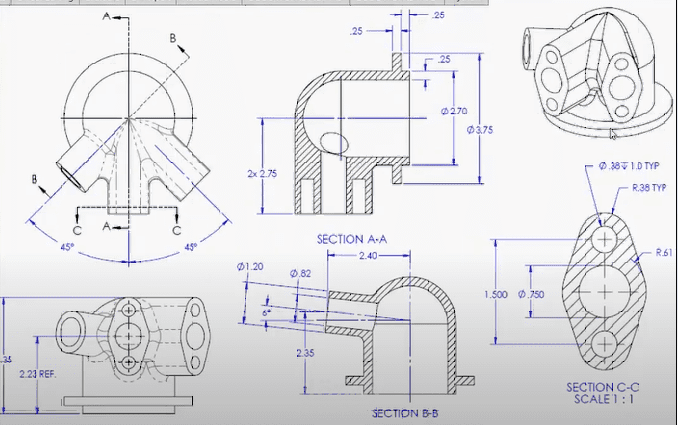جزء ميكانيكي تم رسمة بواسطة برنامج السوليد ورك