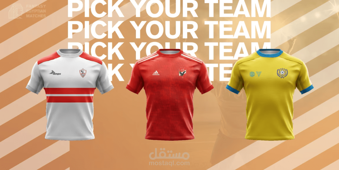 تفاعل المستخدم: تظهر ميزة اختيار الفرق (Pick Your Team) من خلال استعراض قمصان أشهر الأندية المصرية (الأهلي، الزمالك، الإسماعيلي)، مما يخلق ارتباطاً عاطفياً مع الجمهور المستهدف.