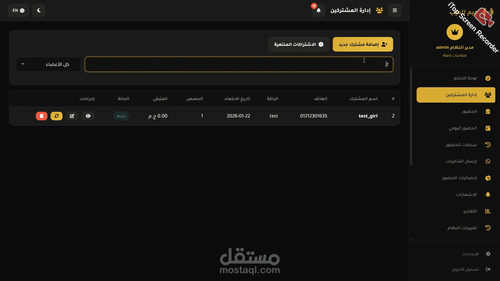 The system gives gym owners full control over subscriptions, members, attendance, payments, and staff permissions from one centralized dashboard, with a clean and modern interface that works smoothly on all devices.