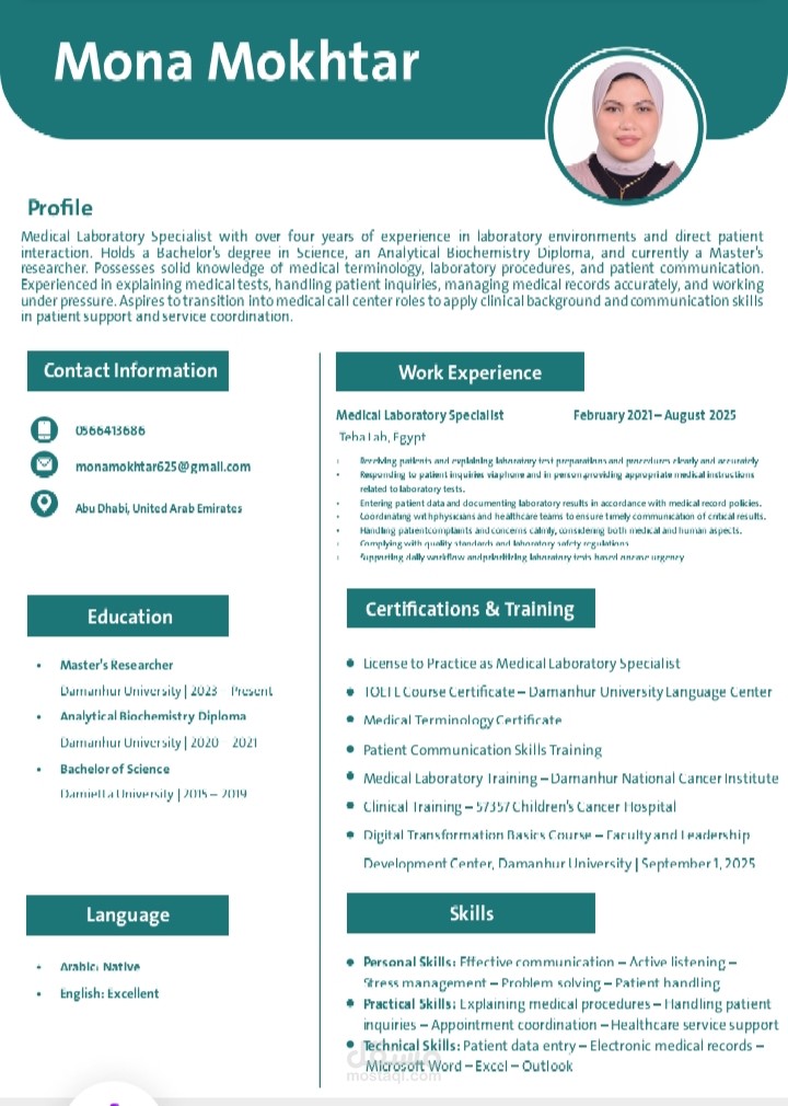سيرة ذاتية تصميمها كلاسيكي وملون، تحتوي على صورة شخصية للعميل، تعرض الخبرات والمهارات بطريقة جذابة بصريًا، مناسبة للتقديم اليدوي أو الإلكتروني، وتترك انطباعًا احترافيًا منذ اللحظة الأولى.