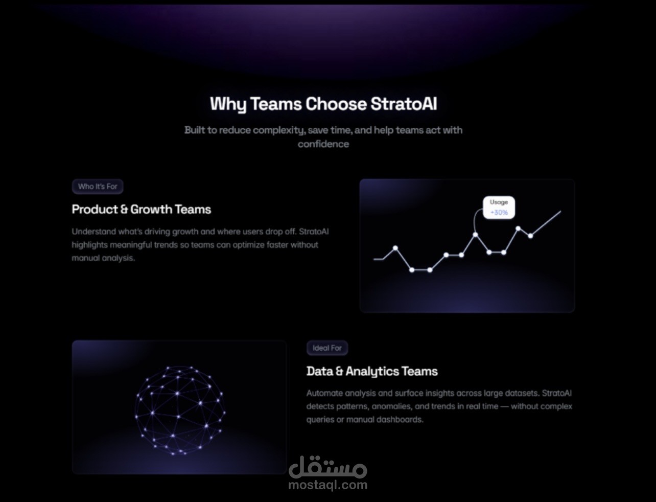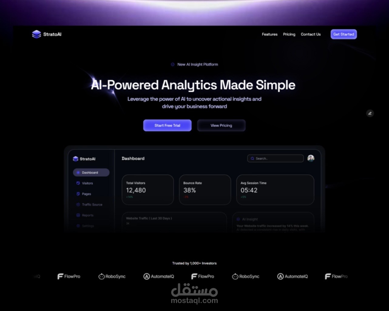 تم تطوير StratoAI ليدعم الإطلاق السريع مع الحفاظ على مظهر احترافي ومصقول عبر جميع الأجهزة والشاشات