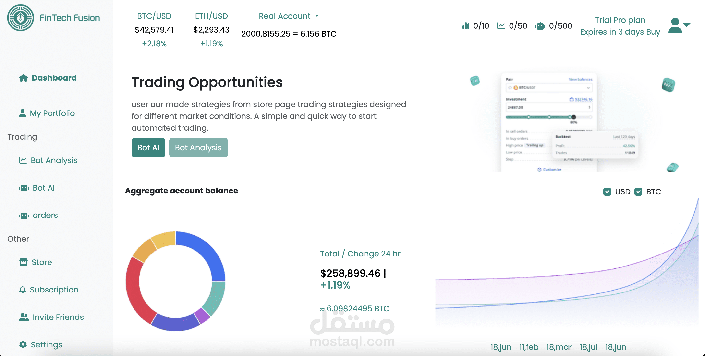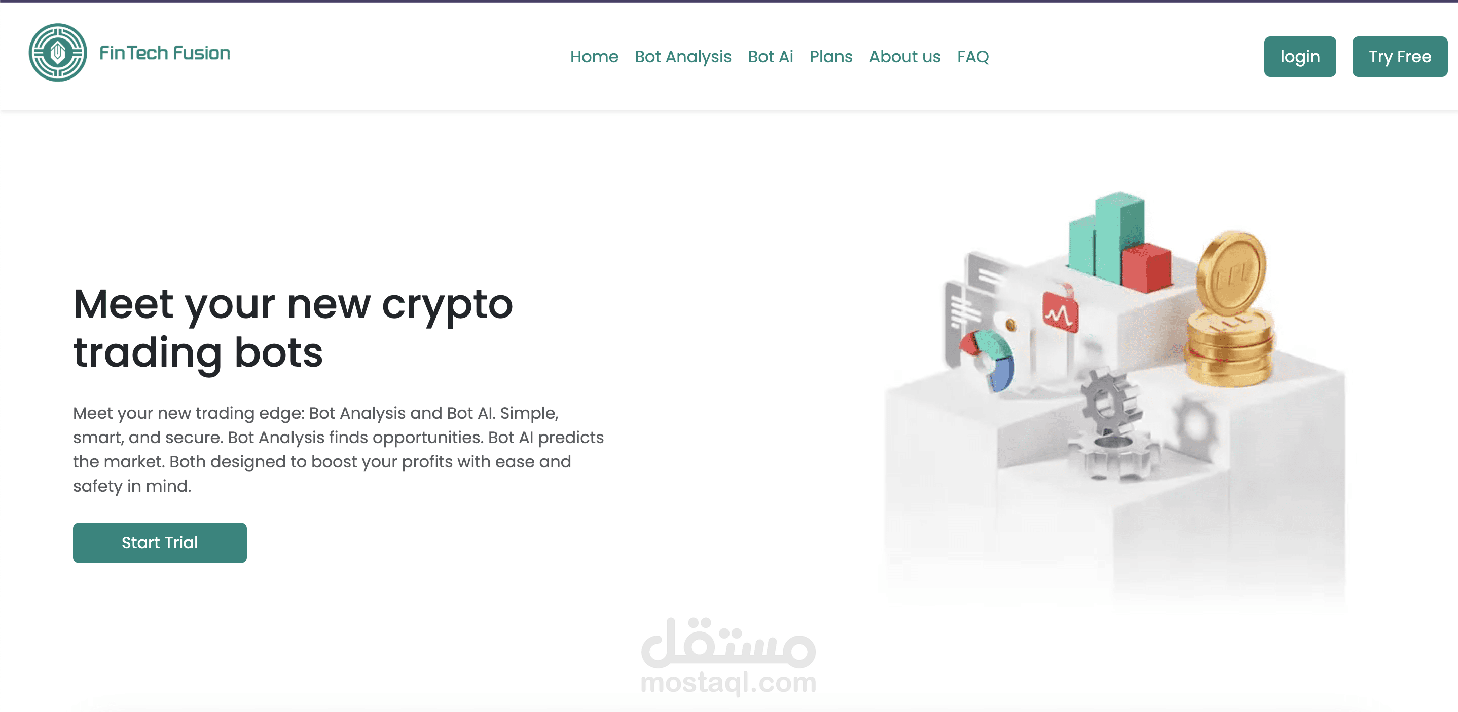 Fintechfusion is a smart crypto trading platform powered by Bot Analysis and Bot AI. It helps users identify market opportunities, automate trading strategies, and track portfolio performance through a simple, secure, and intuitive dashboard