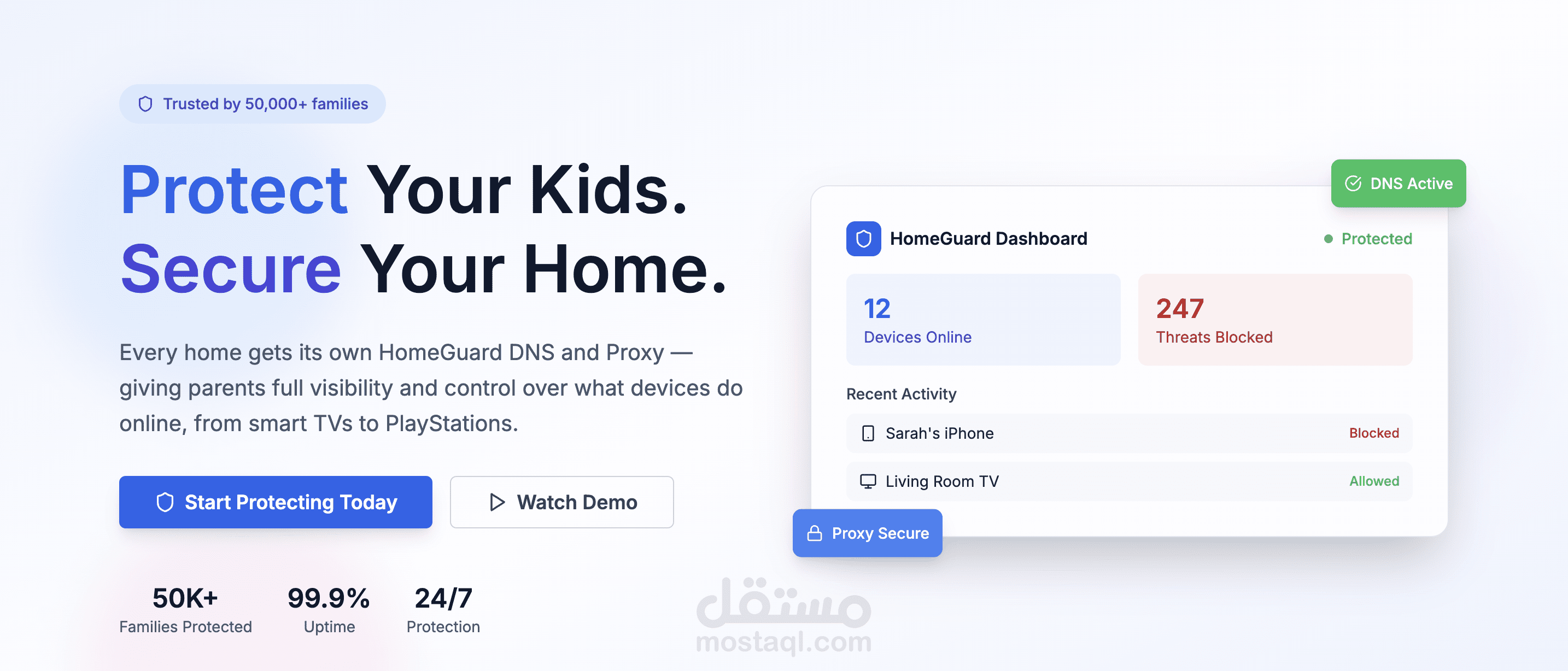 HomeGuard is a smart home network protection platform that helps parents secure their home internet and protect their kids online. It provides real-time visibility into connected devices, blocks harmful content, and gives full control over what devices can access—across phones, TVs, gaming consoles, and more—all from one simple dashboard.