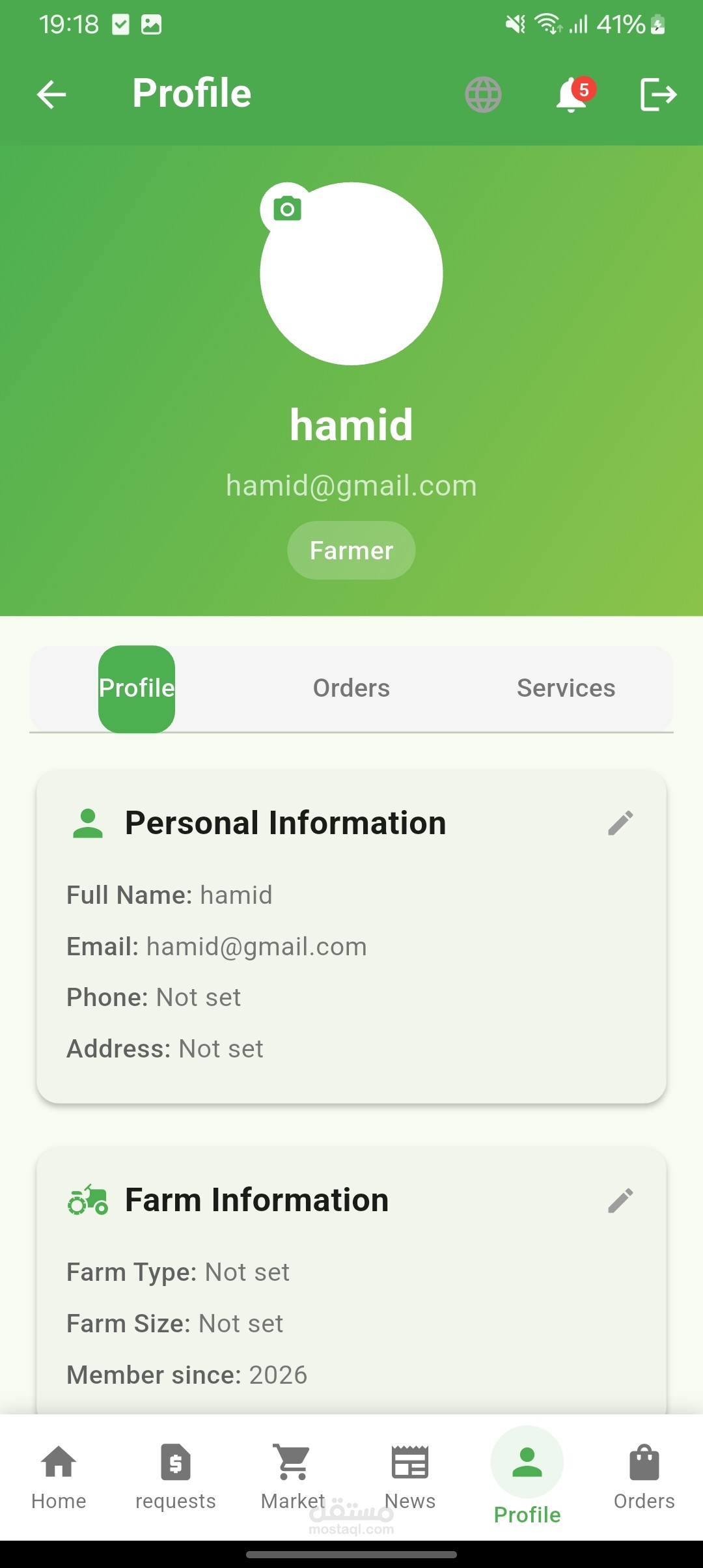 ملف شخصي كامل للمزارع مع جميع المعلومات