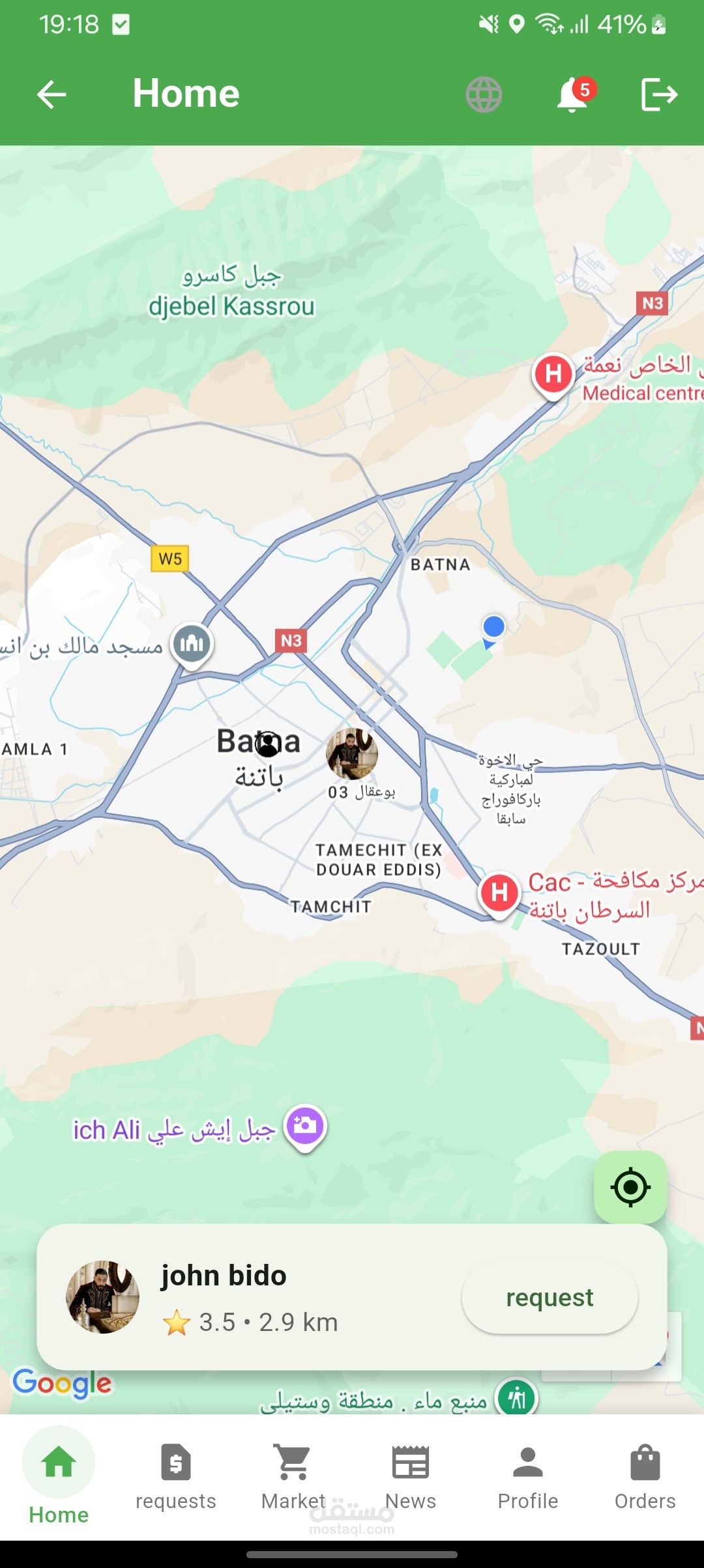 عرض الطلبات والخدمات المتاحة