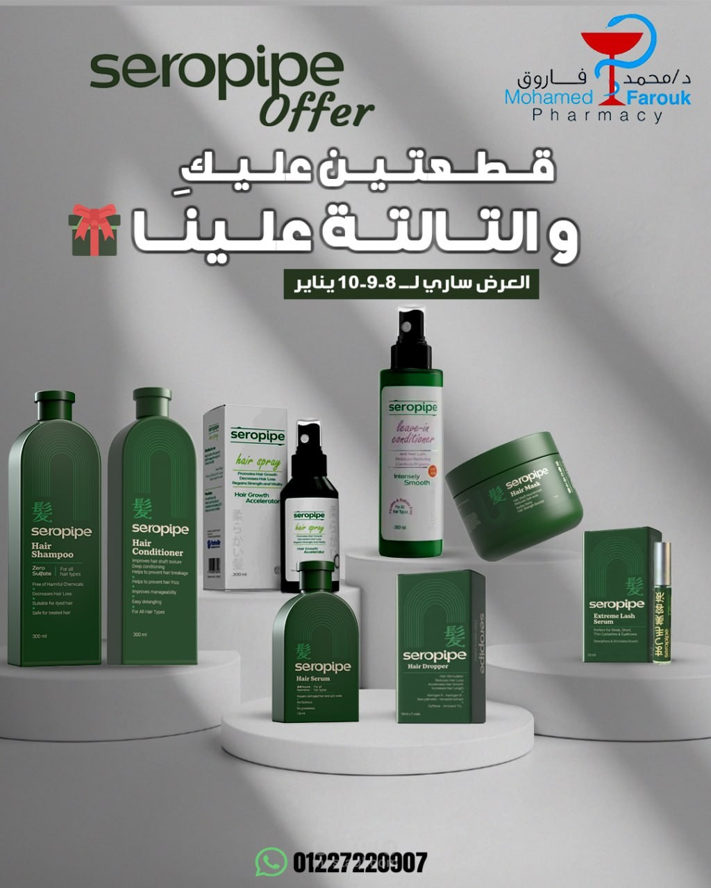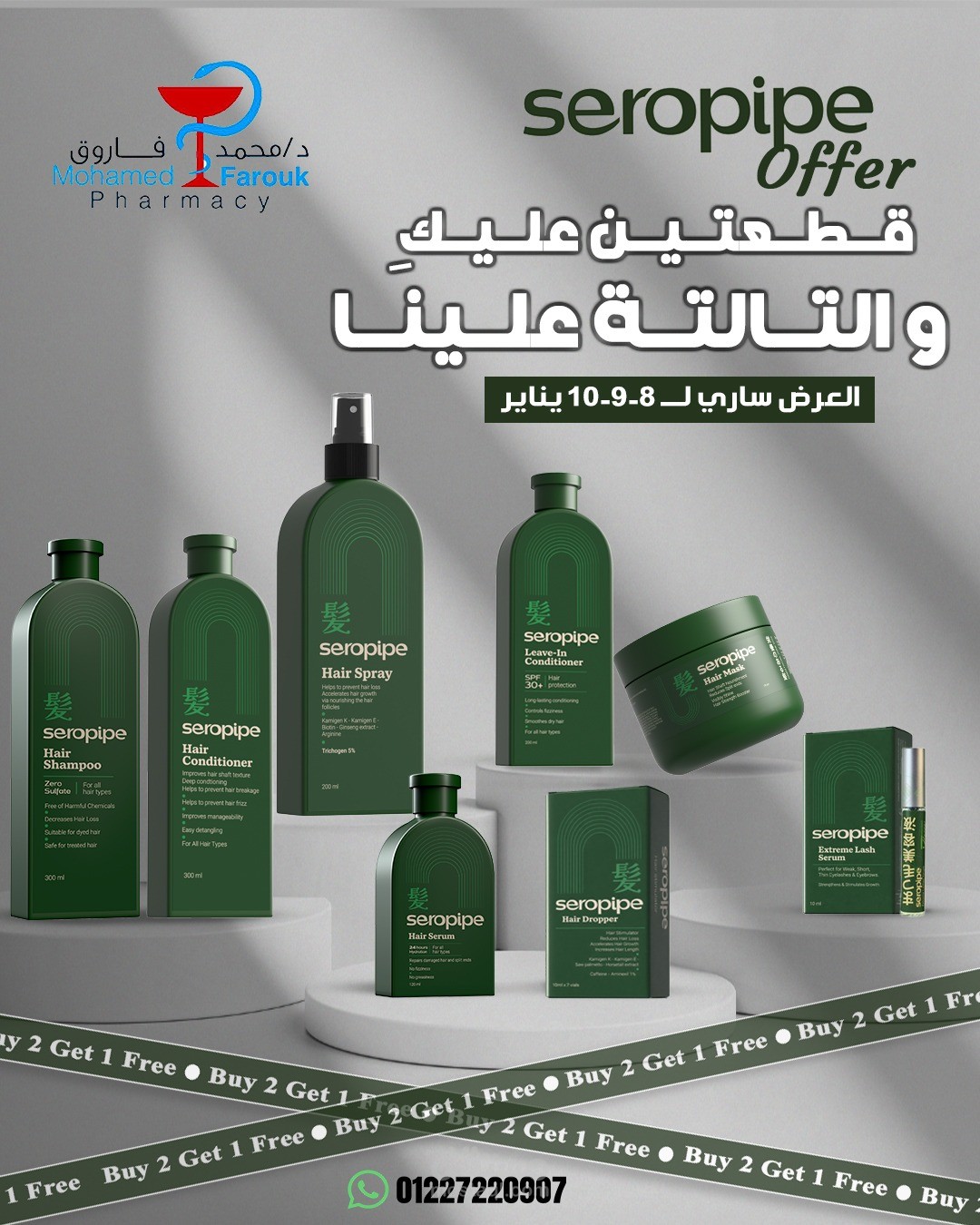 I designed a promotional social media post for Seropipe hair care products, featuring a “Buy 2 Get 1 Free” offer.