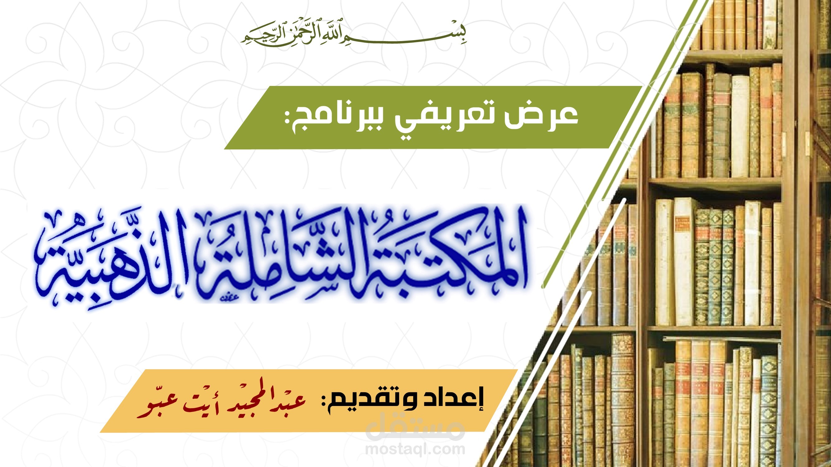 عرض تقديمي احترافي ببرنامج الباور بوينت يعطي نبذة مختصرة عن المكتبة الشاملة الذهبية