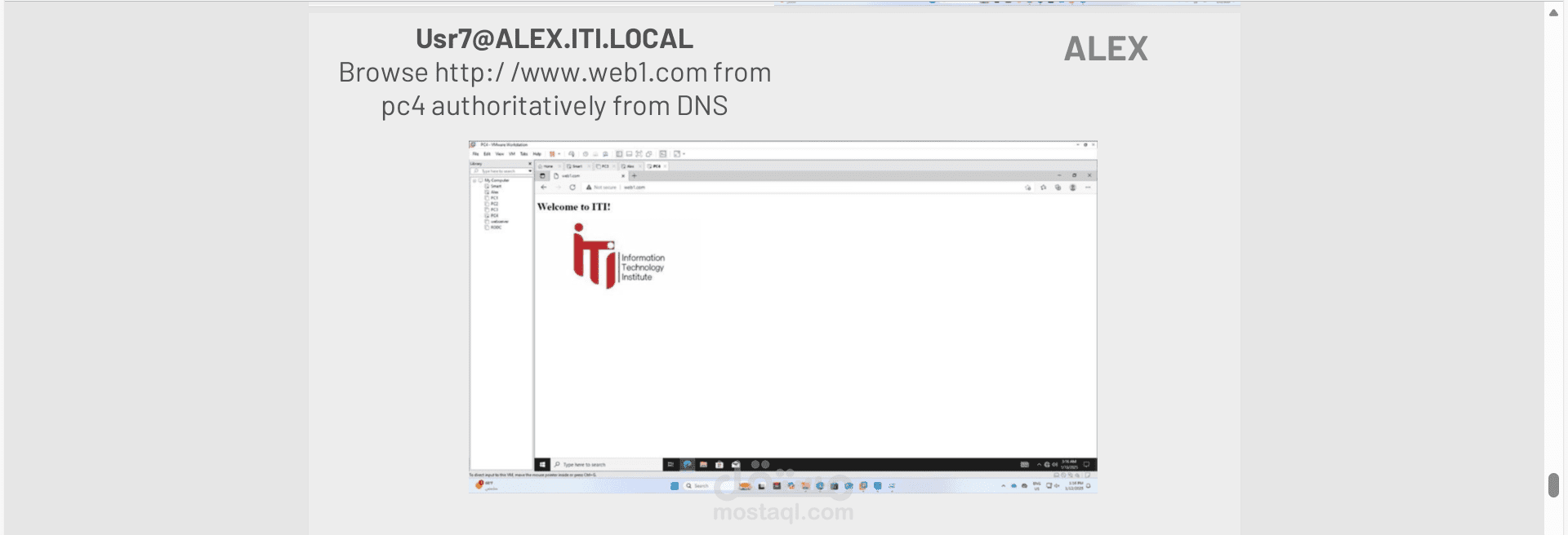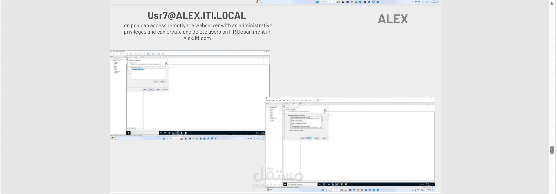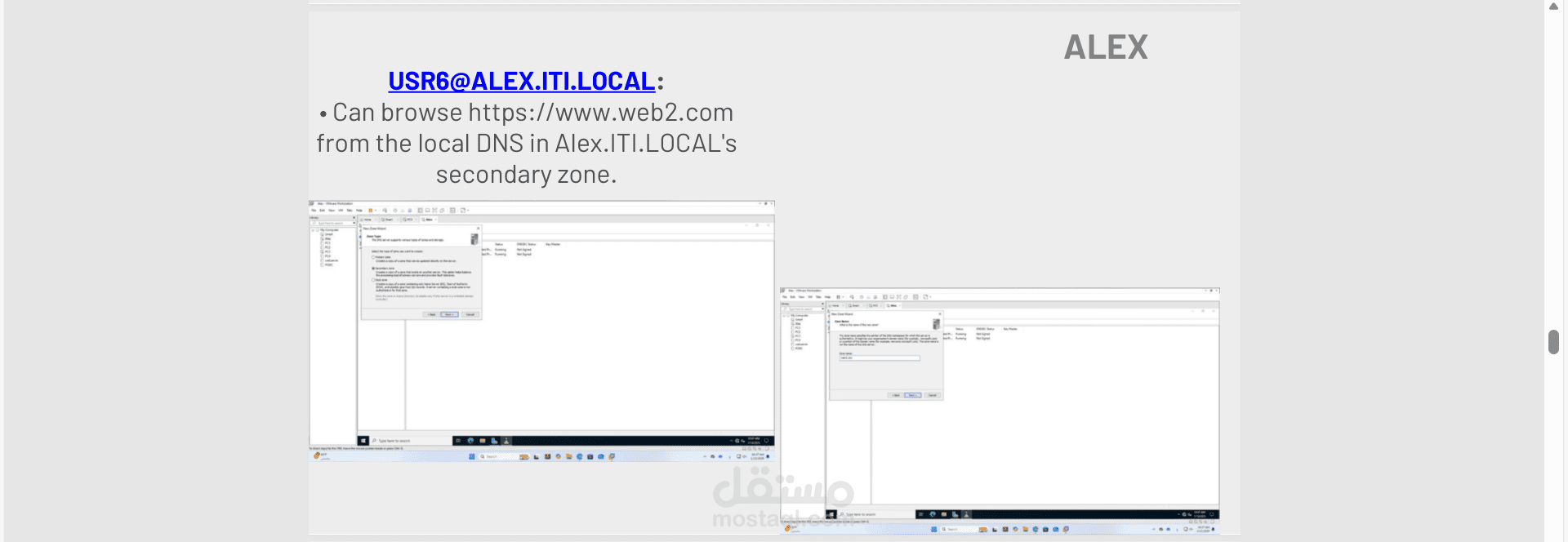 تم تنفيذ إعداد Branch Domain Controller داخل نطاق Alex.iti.local لربط الفرع بالدومين الرئيسي ITI.local وتحسين إدارة المستخدمين والخدمات داخل بيئة الفرع.