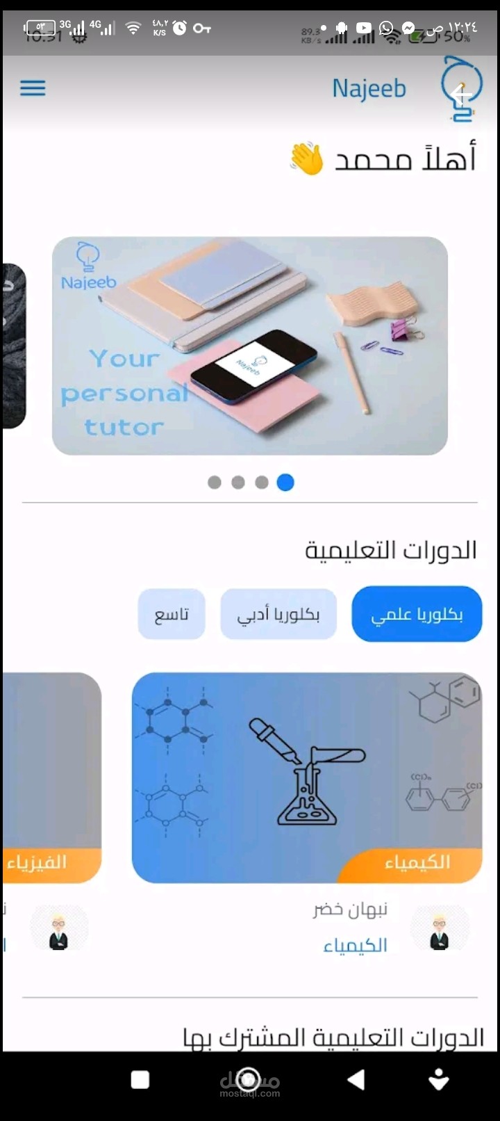 تطبيق عرض الدروس المصورة المسجلة مسبقاً للطلاب مقابل اشتراك