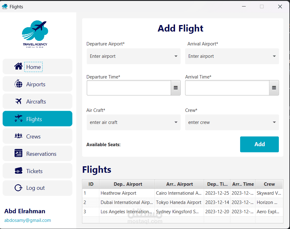 تطبيق Airline Reservation System هو نظام مكتبي (Desktop Application) تم تطويره باستخدام Java و JavaFX، ويهدف إلى إدارة عمليات حجز الطيران داخل المطارات بطريقة منظمة وسهلة الاستخدام.