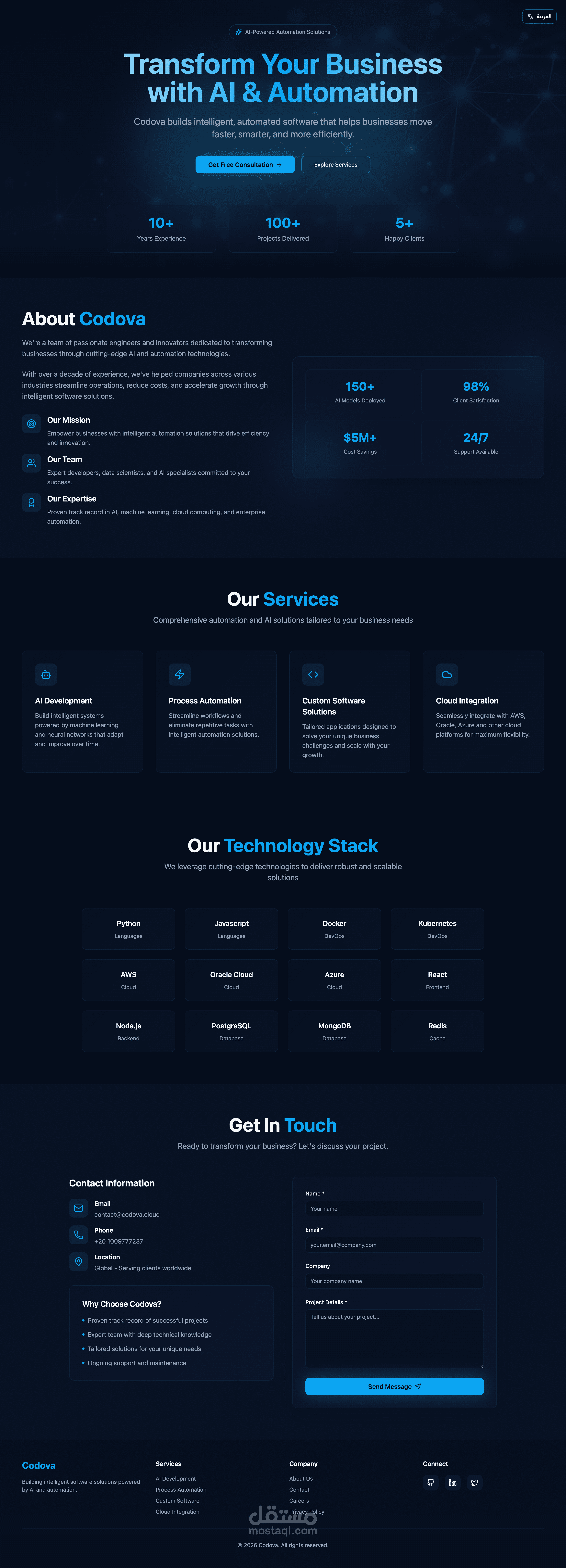 عملت علي برمج و تطوير موقع Codova من الصفر حتي الاطلاق باحدث التكنولوجيا