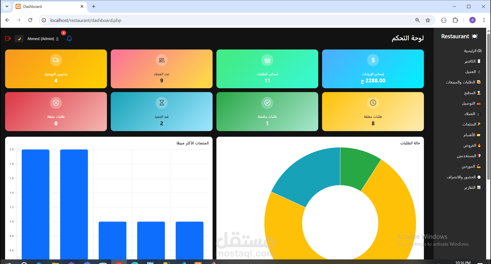 * Dashboard إدارية لعرض التقارير والإحصائيات