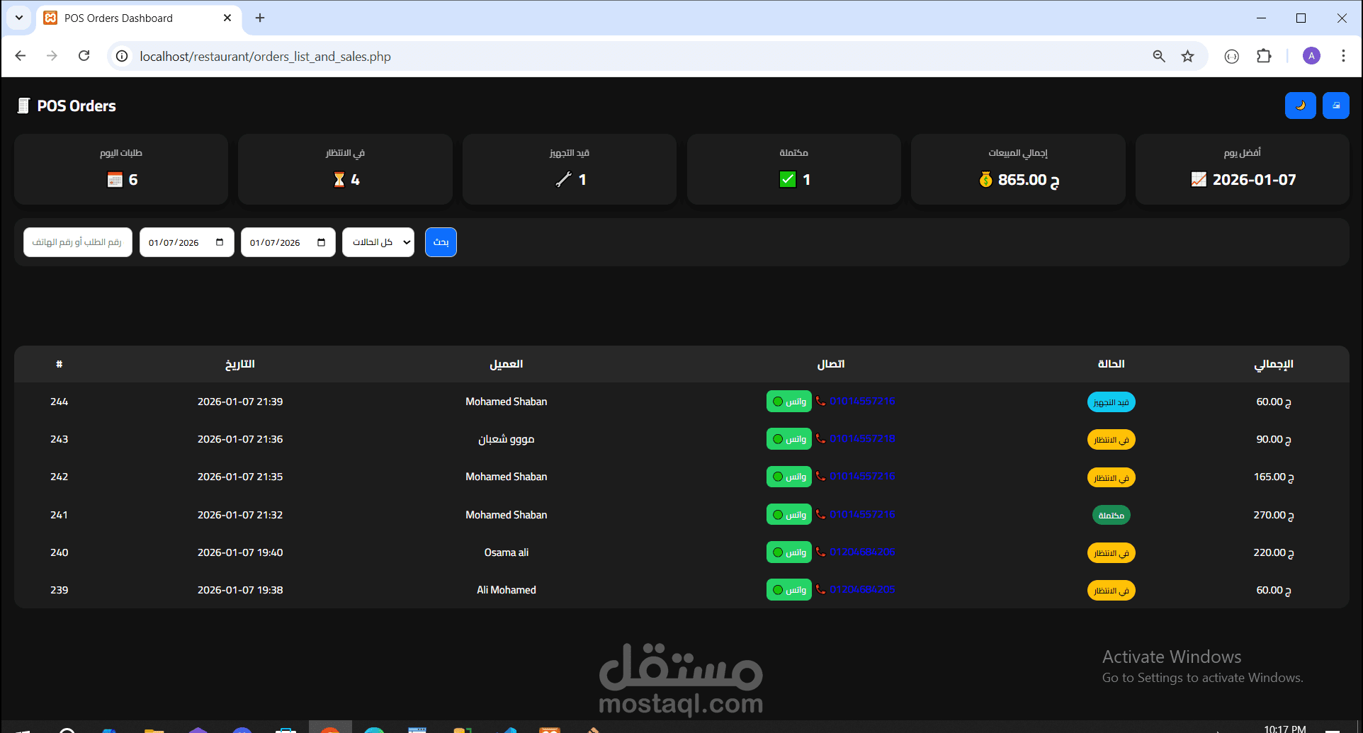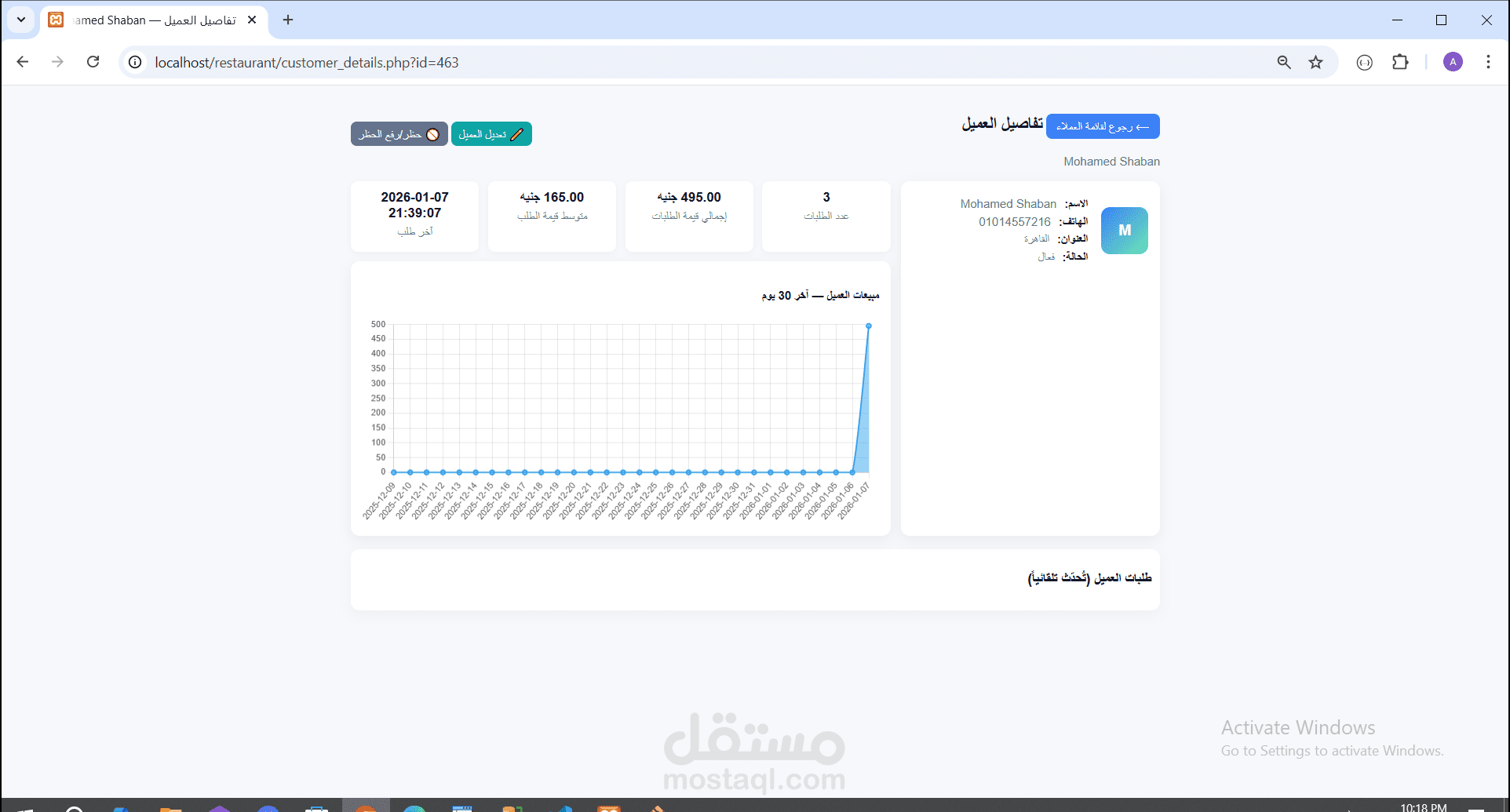 * صفحة لعرض طلبات كل عميل وسجل الطلبات