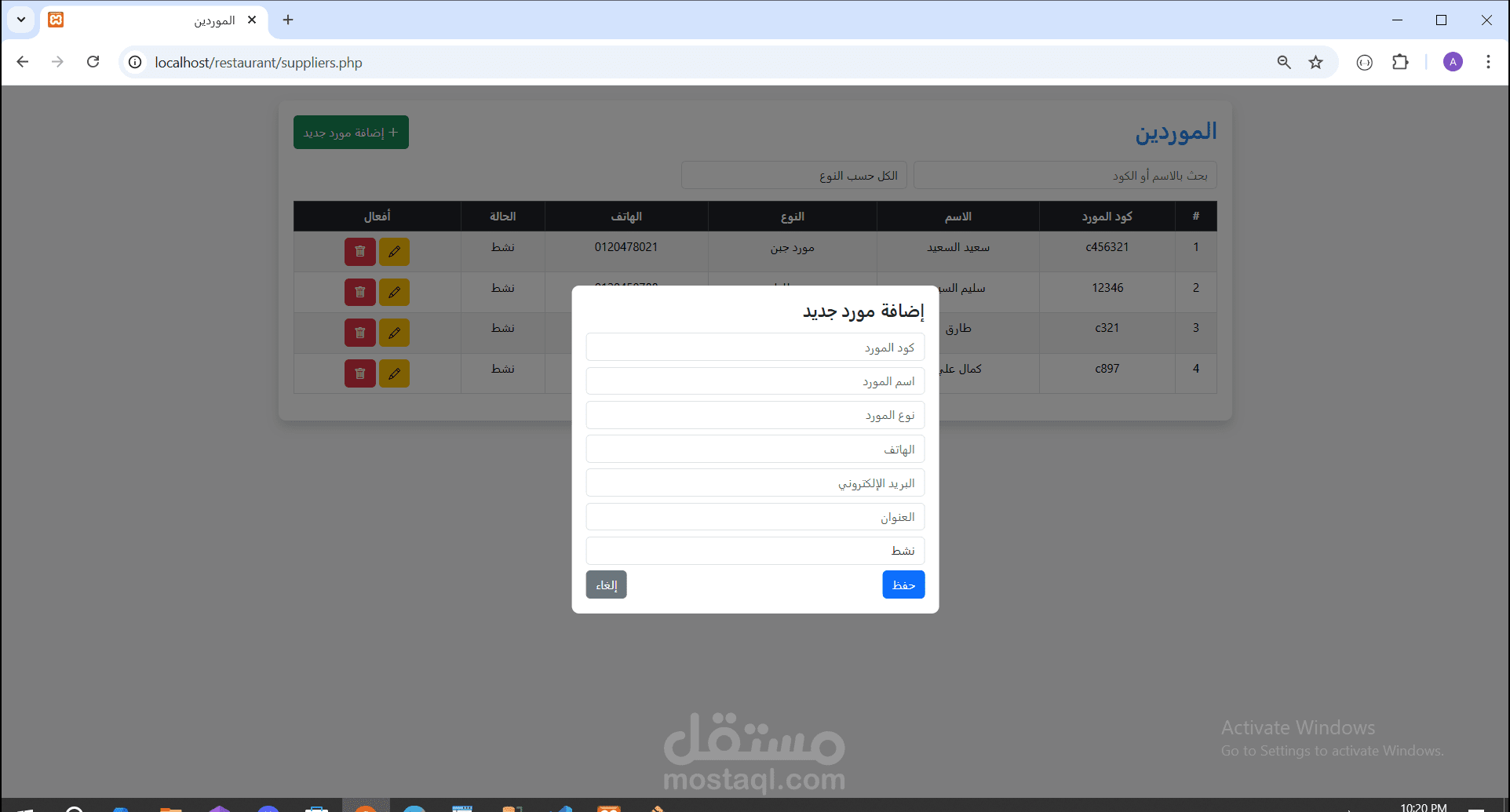 * شاشة العملاء والموردين