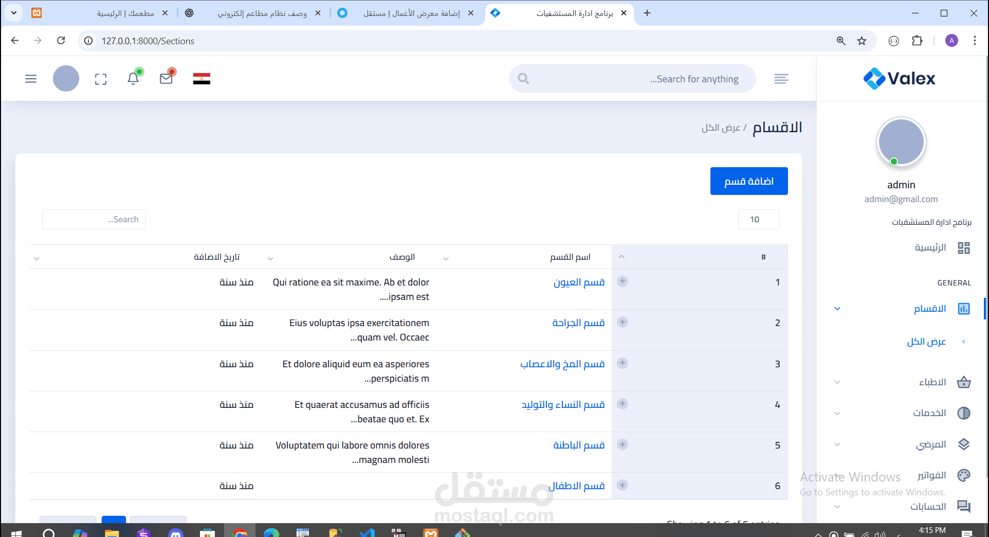 النظام عبارة عن منصة شاملة لإدارة الأقسام الطبية، الأطباء، المرضى، الخدمات الطبية، شركات التأمين، الإسعاف، الفواتير، والتحاليل والأشعة، مع تحديث فوري للبيانات بين جميع الأقسام بدون الحاجة لإعادة تحميل الصفحات.