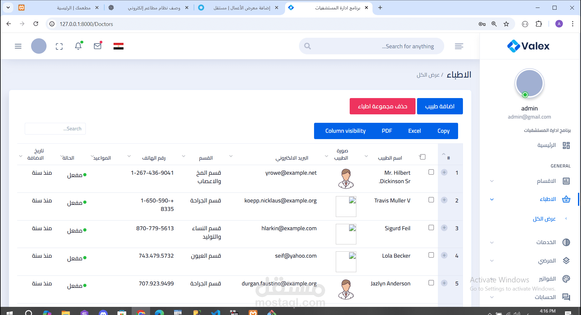 * إدارة الأطباء وتخصصاتهم