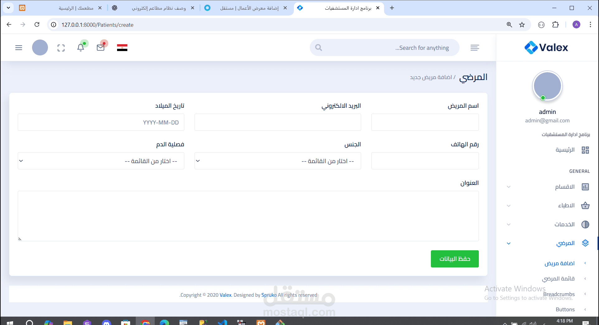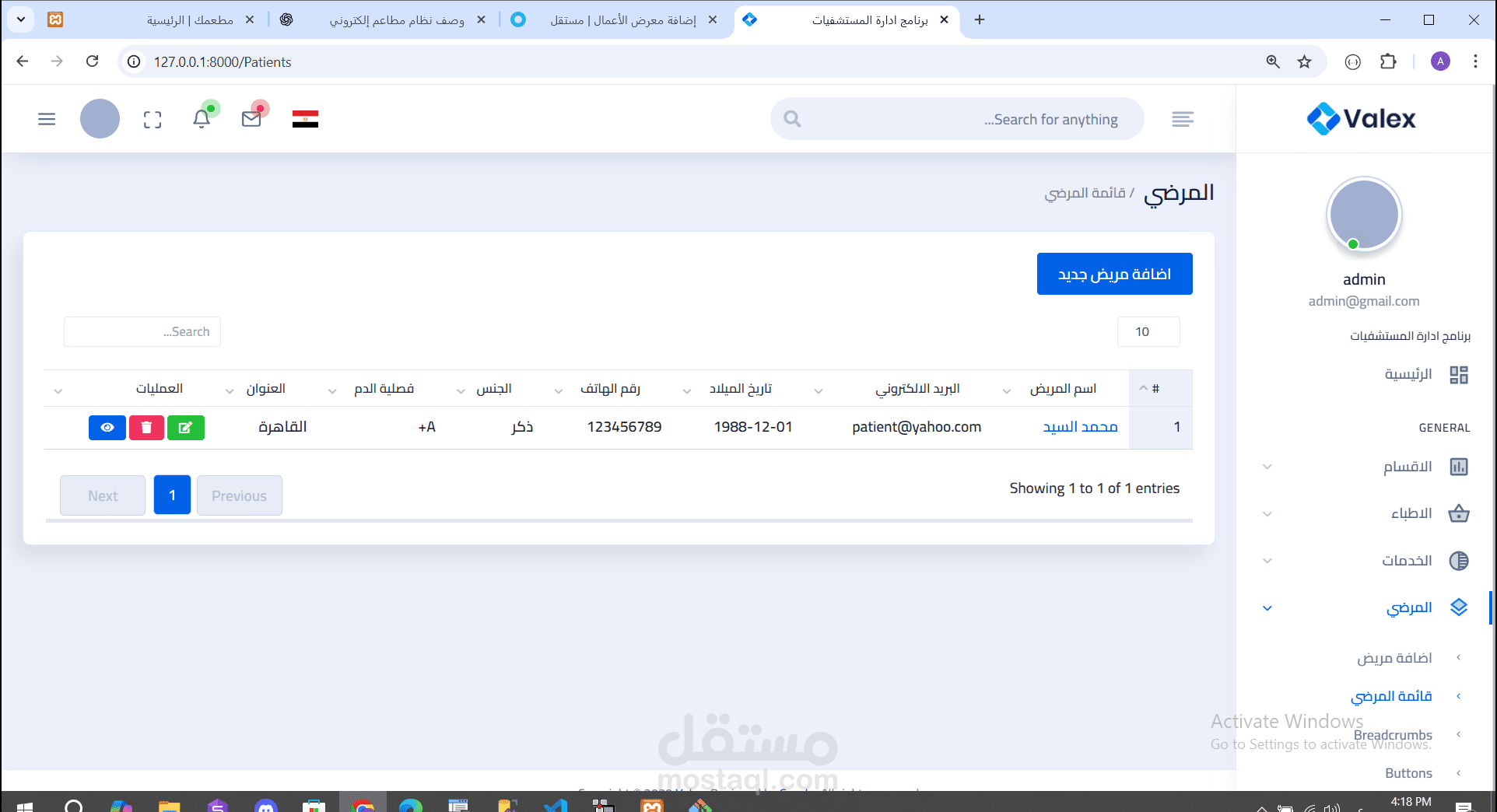 * إدارة المرضى (لكل مريض حساب User خاص به)