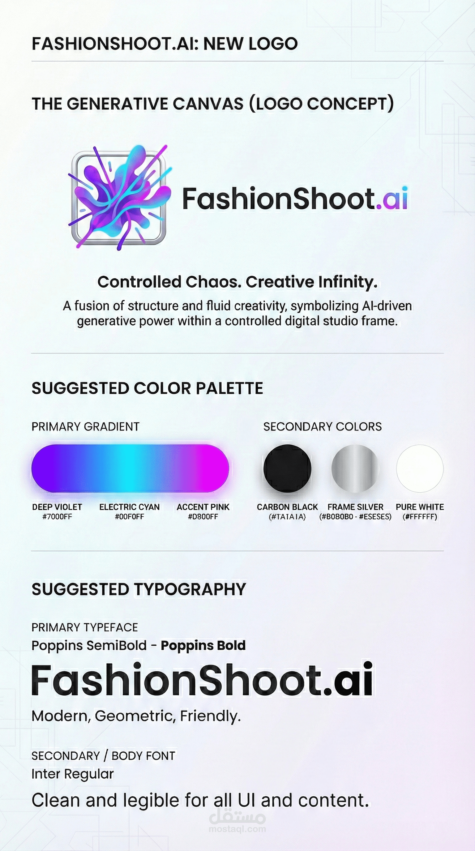 مشروع تصميم الهوية البصرية لـ FashionShoot.ai: اللوحة التوليدية (The Generative Canvas)