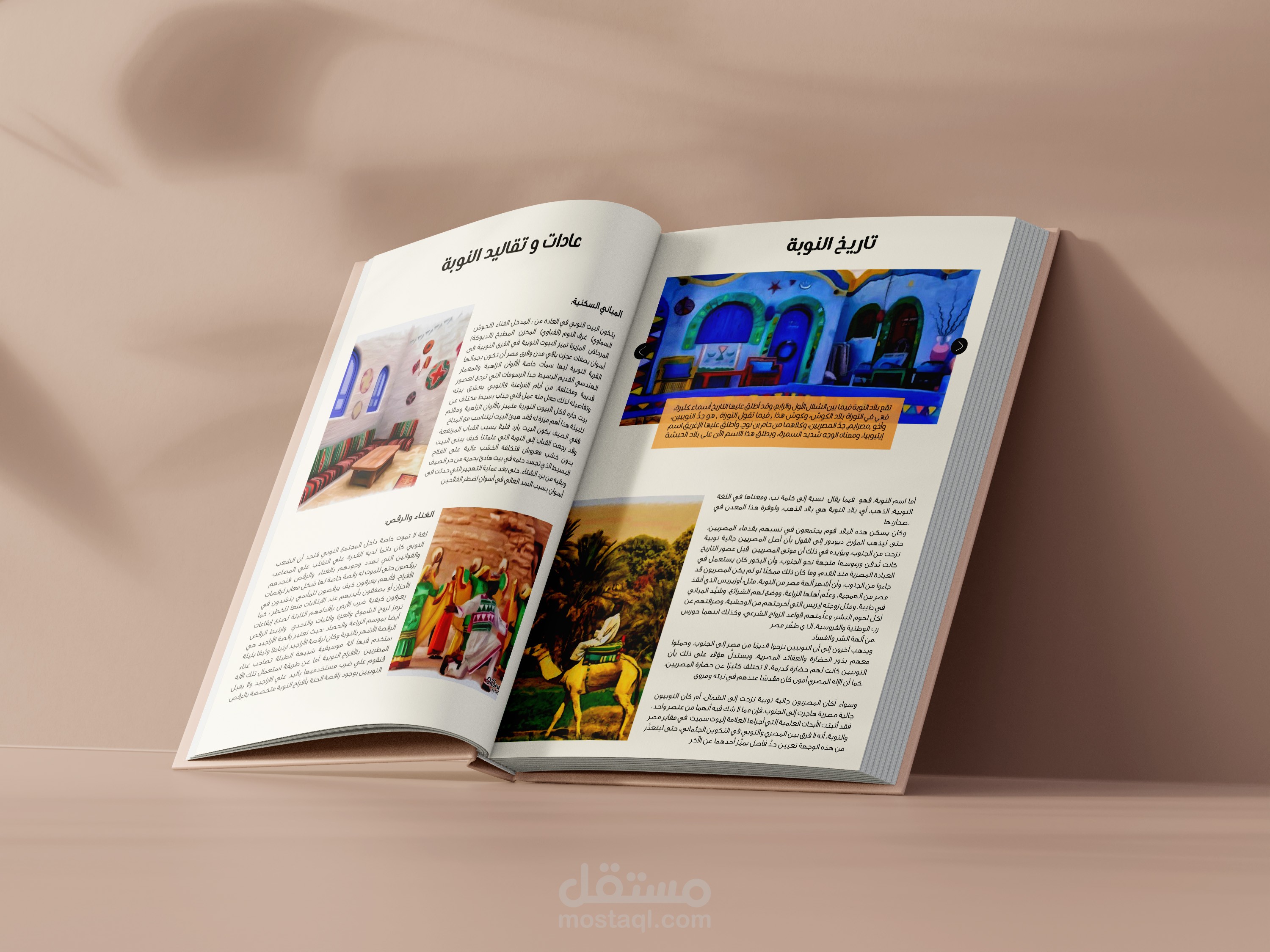 تصميم لغلاف كتاب مشروع تخرج لمكان نوبي تعليمي وتصميم صفحات داخليه تعبر عن النوبه وعادتها وتقاليدها