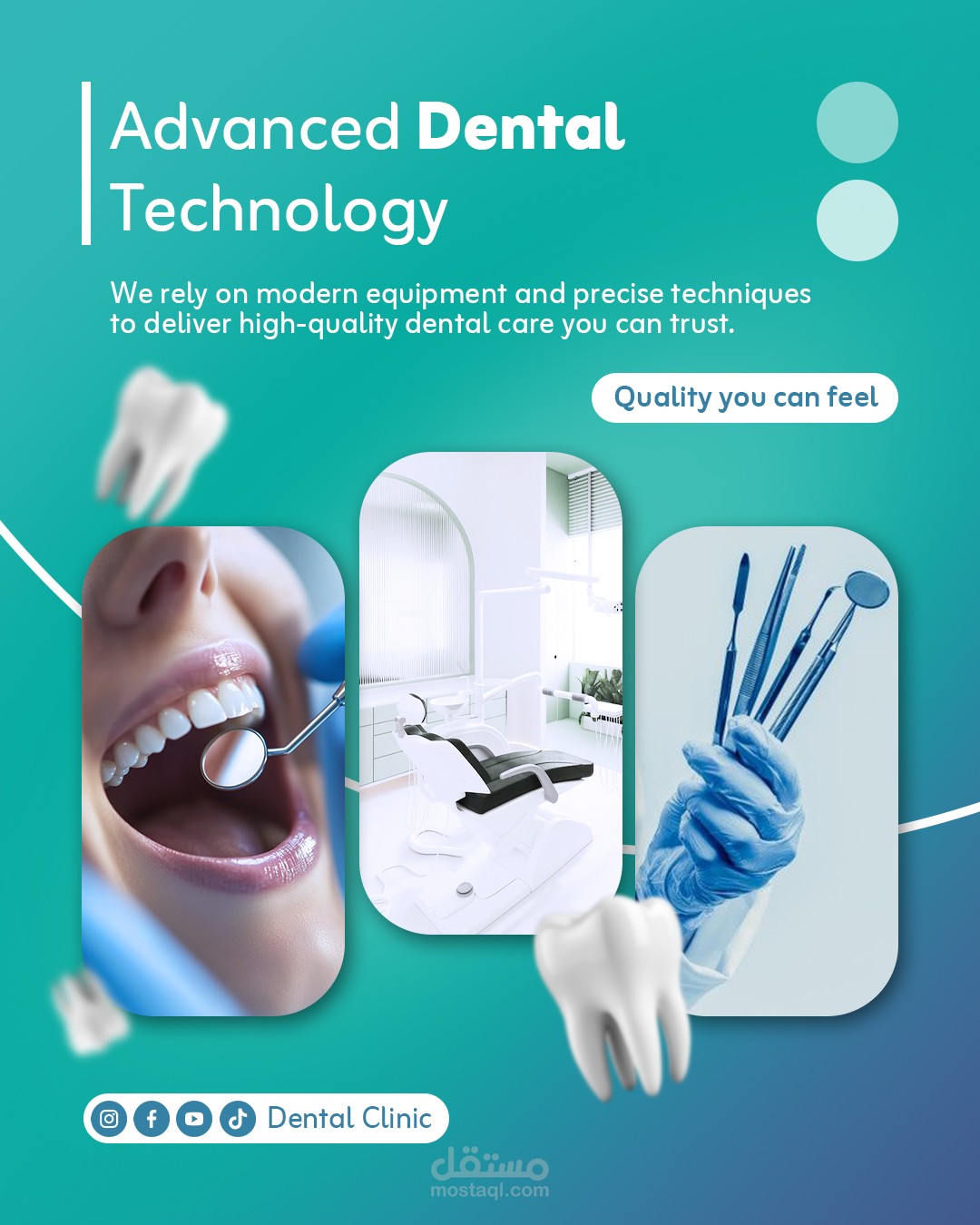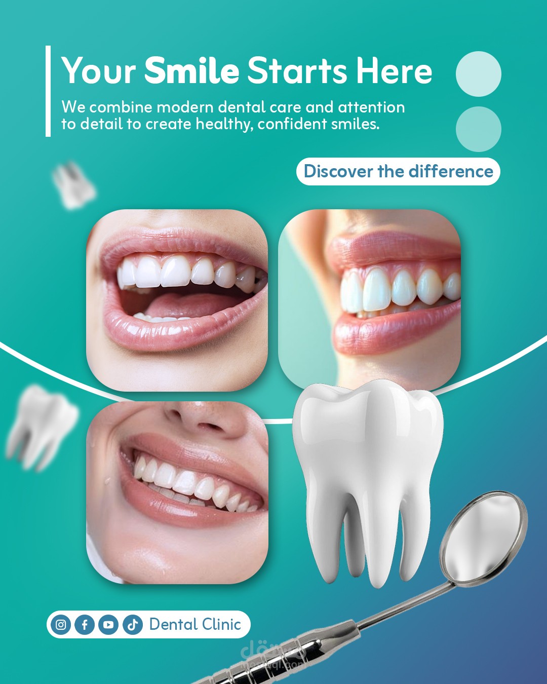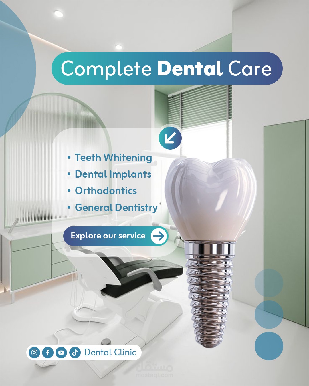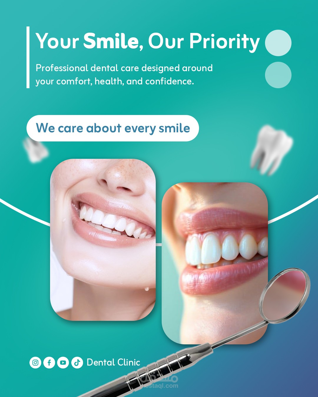 This project showcases a modern and clean social media design system created specifically for dental clinics. The main goal was to build a trustworthy visual identity that reflects professionalism, medical care, and patient comfort.