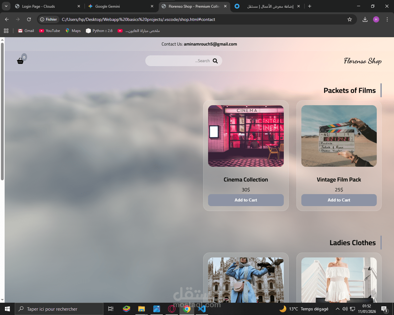 مشروع Florenso Shop ليس مجرد قالب تجارة إلكترونية تقليدي، بل هو إعادة تعريف لكيفية تفاعل المستخدم مع المتاجر الرقمية. تم تصميم الواجهة بناءً على فلسفة Glassmorphism (التصميم الزجاجي)، التي تعتمد على الشفافية العالية، وتأثيرات الضباب الخلفي (Backdrop Blur)، والحدود الرفيعة التي تعطي إحساساً بأن العناصر تطفو فوق الخلفية. الهدف من هذا التصميم هو تقليل التلوث البصري ومنح المستخدم تجربة تصفح هادئة وفاخرة.