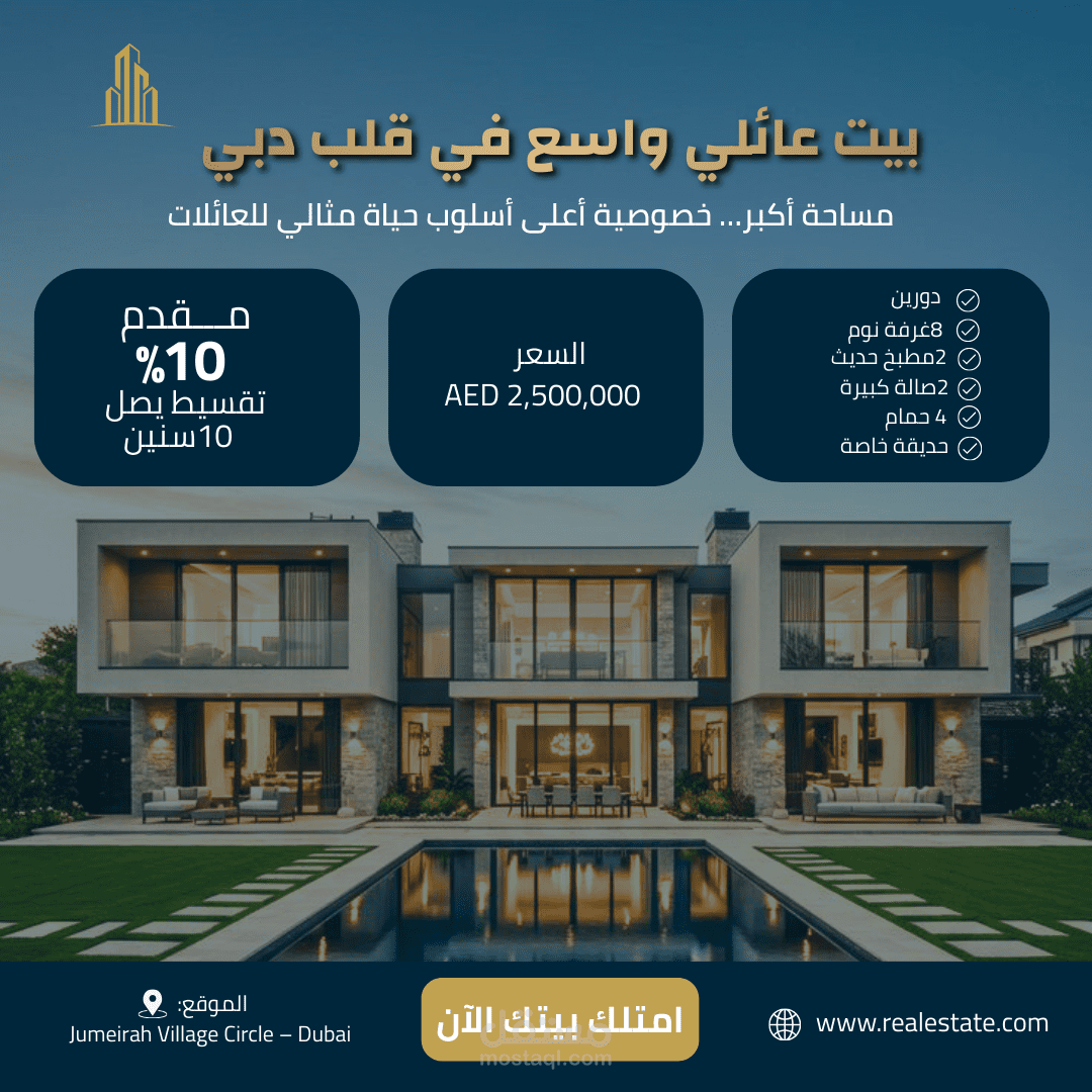 لإيصال إحساس بالثقة، الاحتراف، والقيمة العقارية.