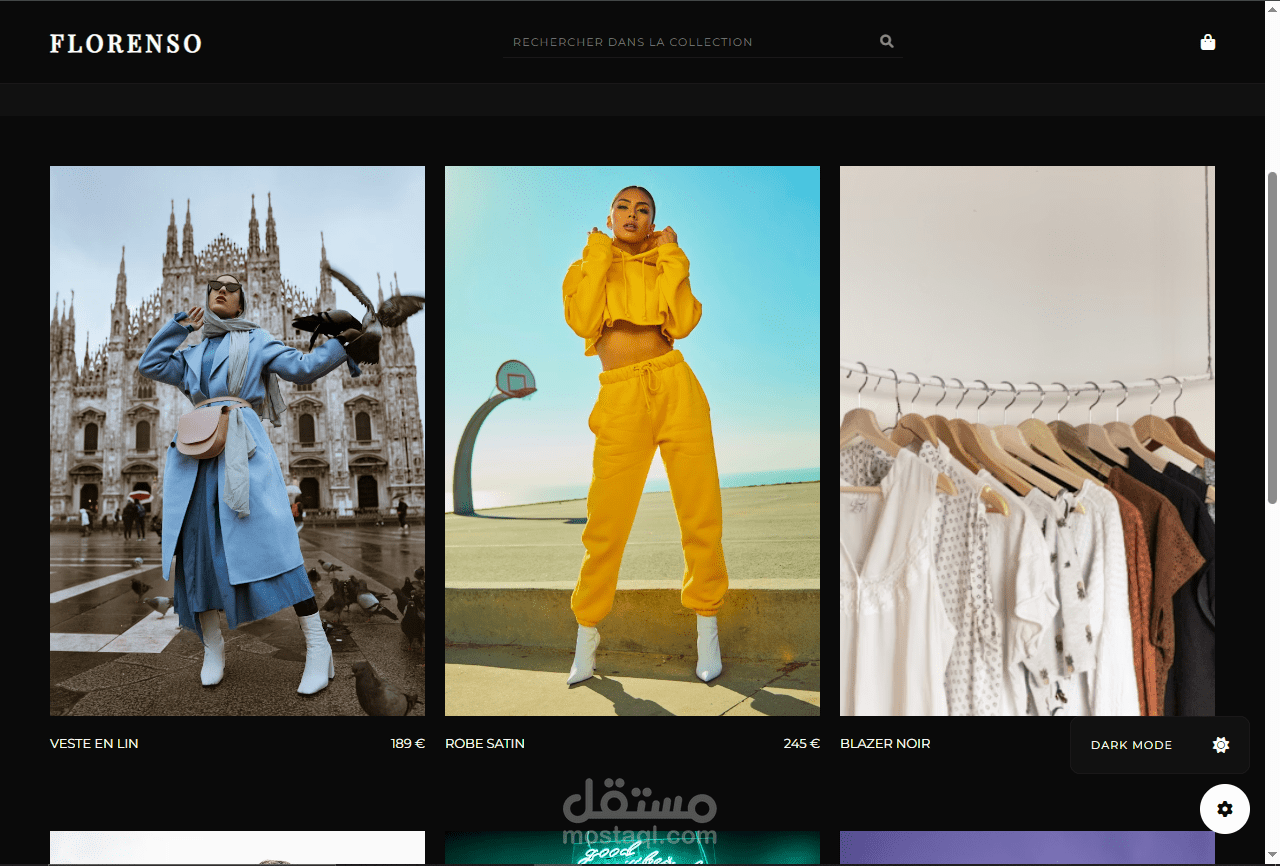 هوية بصرية فاخرة: يعتمد التصميم على الخطوط الكلاسيكية العريضة (Typography) والمساحات البيضاء التي تعطي إحساساً بالفخامة والراحة البصرية، مع استخدام صور عالية الجودة تمثل أرقى صيحات الموضة.