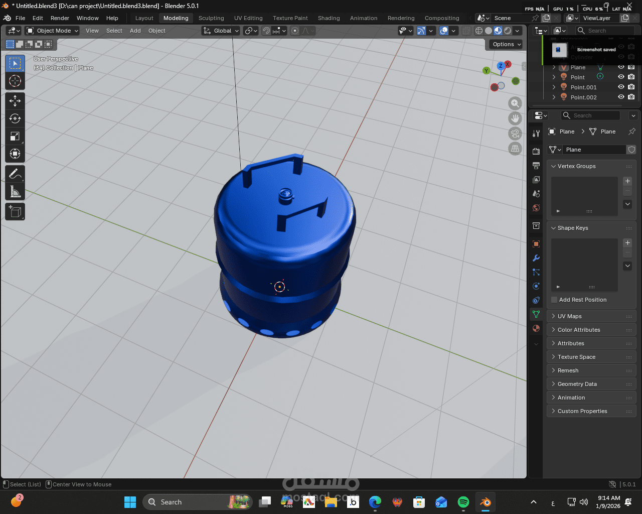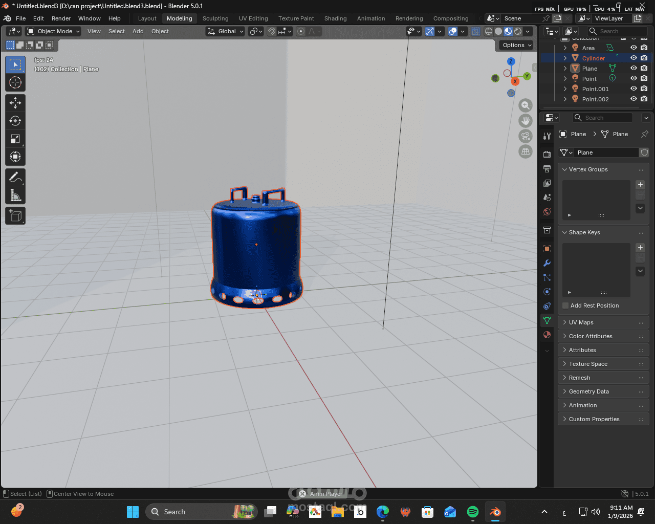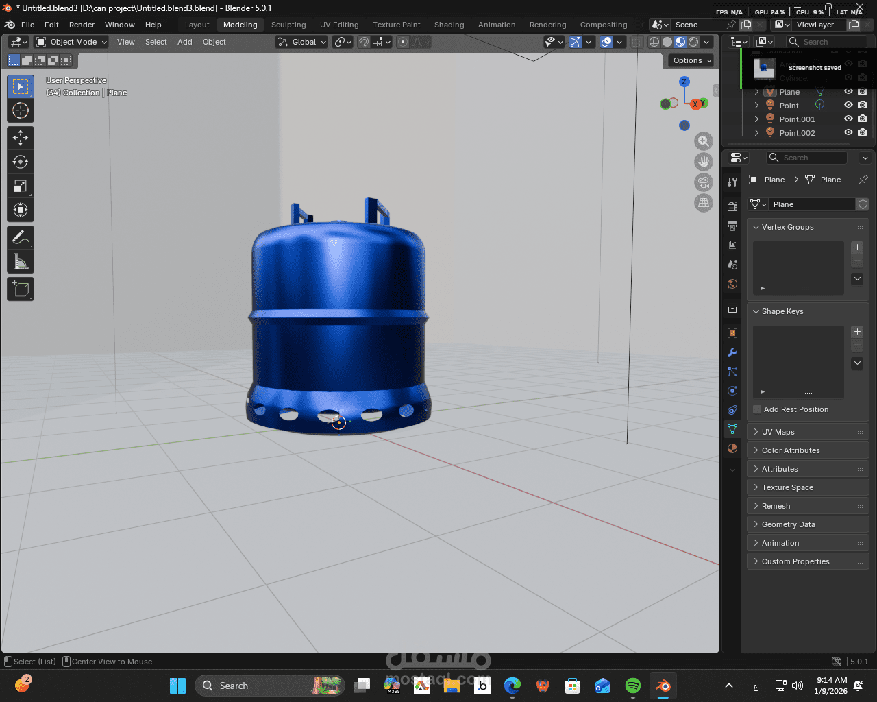 This project features a stylized 3D gas cylinder modeled in Blender.