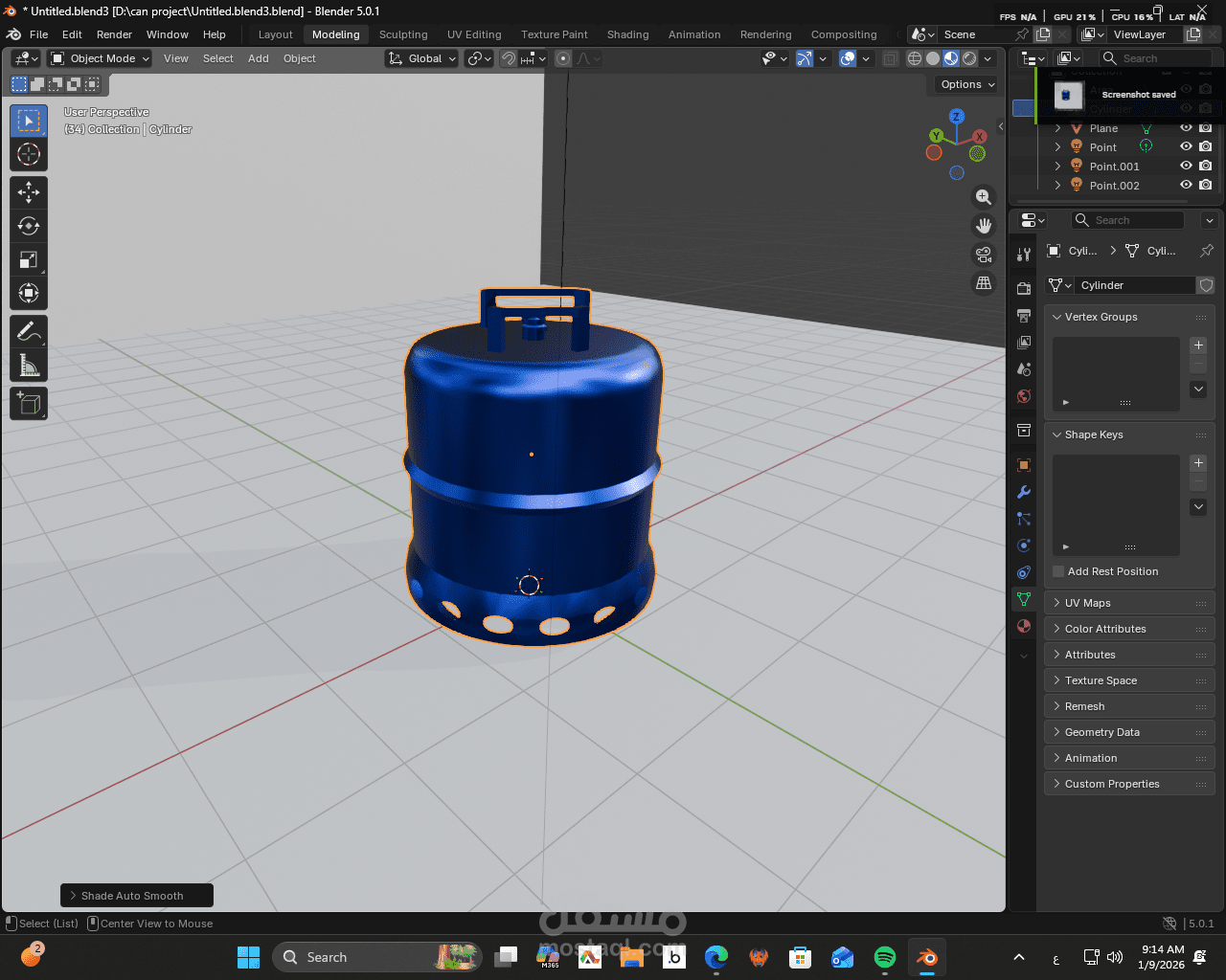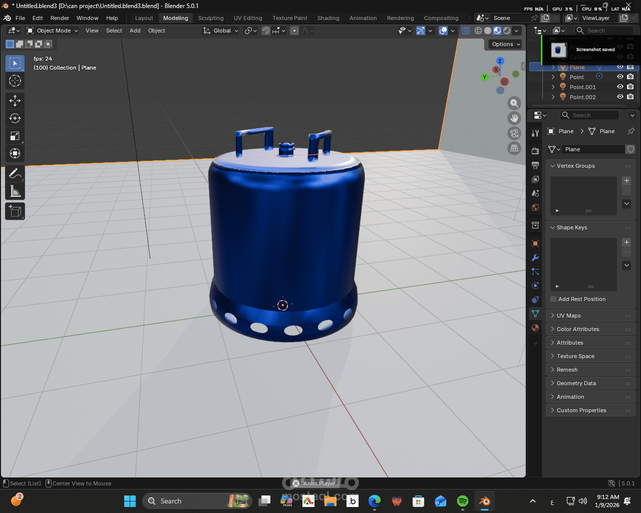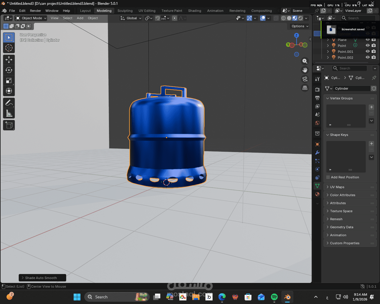 This project features a stylized 3D gas cylinder modeled in Blender.