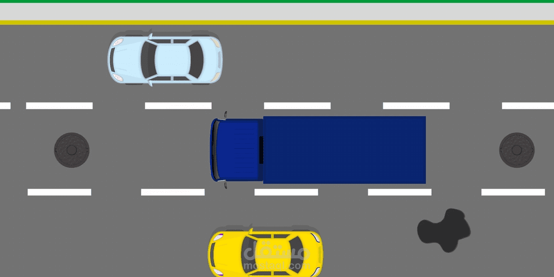 الصورة 13: نتيجة لقلة النوم وفقدان التركيز، يقع حادث سير مروع تصطدم فيه الشاحنة بسيارة أخرى تنفجر وتنقلب على الطريق.