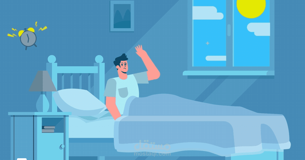 الصورة 07: يستيقظ السائق على صوت المنبه عند شروق الشمس، ويظهر على وجهه ملامح الإرهاق الشديد وعدم الاكتفاء من النوم.