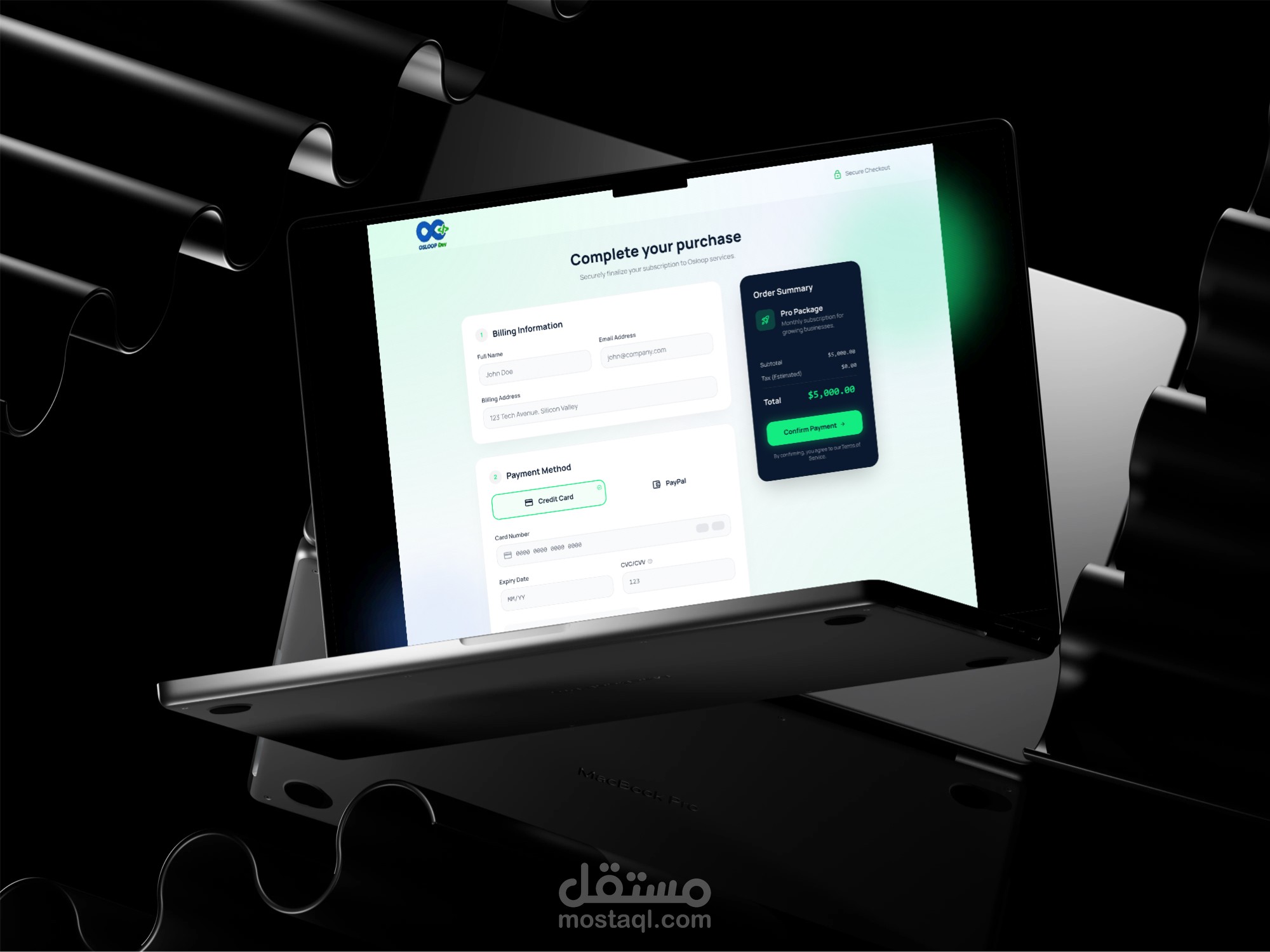 Checkout & Billing UI: Designed a streamlined, distraction-free checkout experience (as seen in the mockup) to reduce cart abandonment and ensure a smooth user journey.