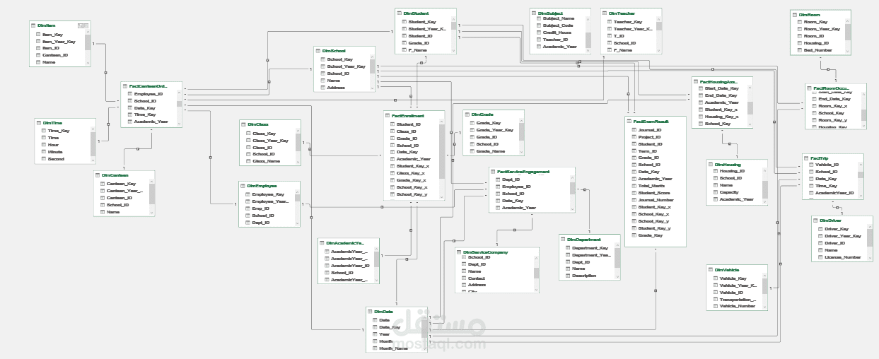 توفر اللوحة نظرة متكاملة على أداء المدرسة عبر أربع وحدات رئيسية: