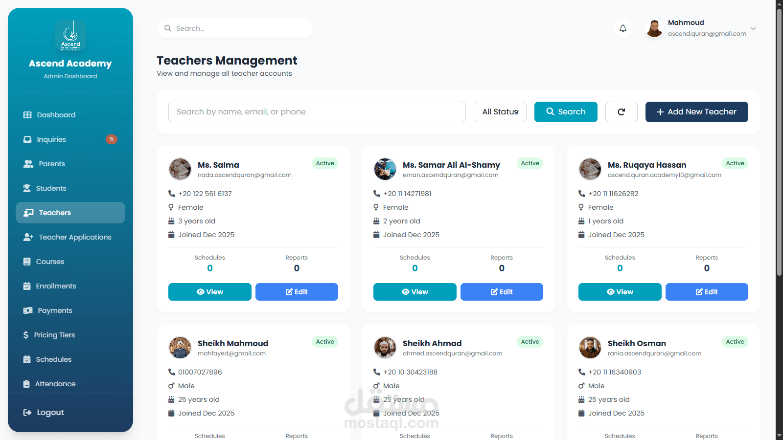 Ascend Qur’an Academy هي نظام إدارة إلكتروني مبنيّ باستخدام Laravel لإدارة منصة تعليمية إلكترونية للقرآن الكريم.
