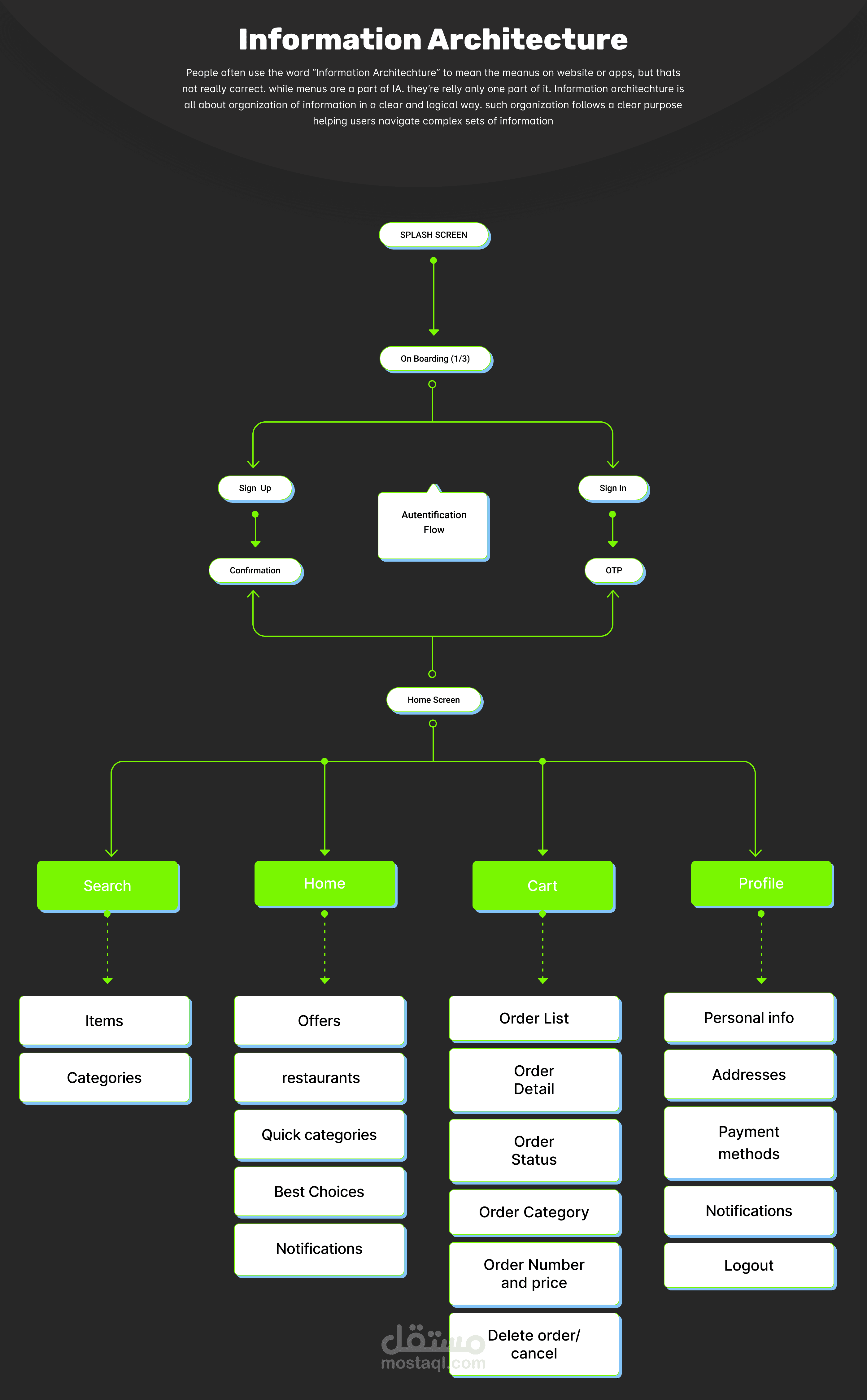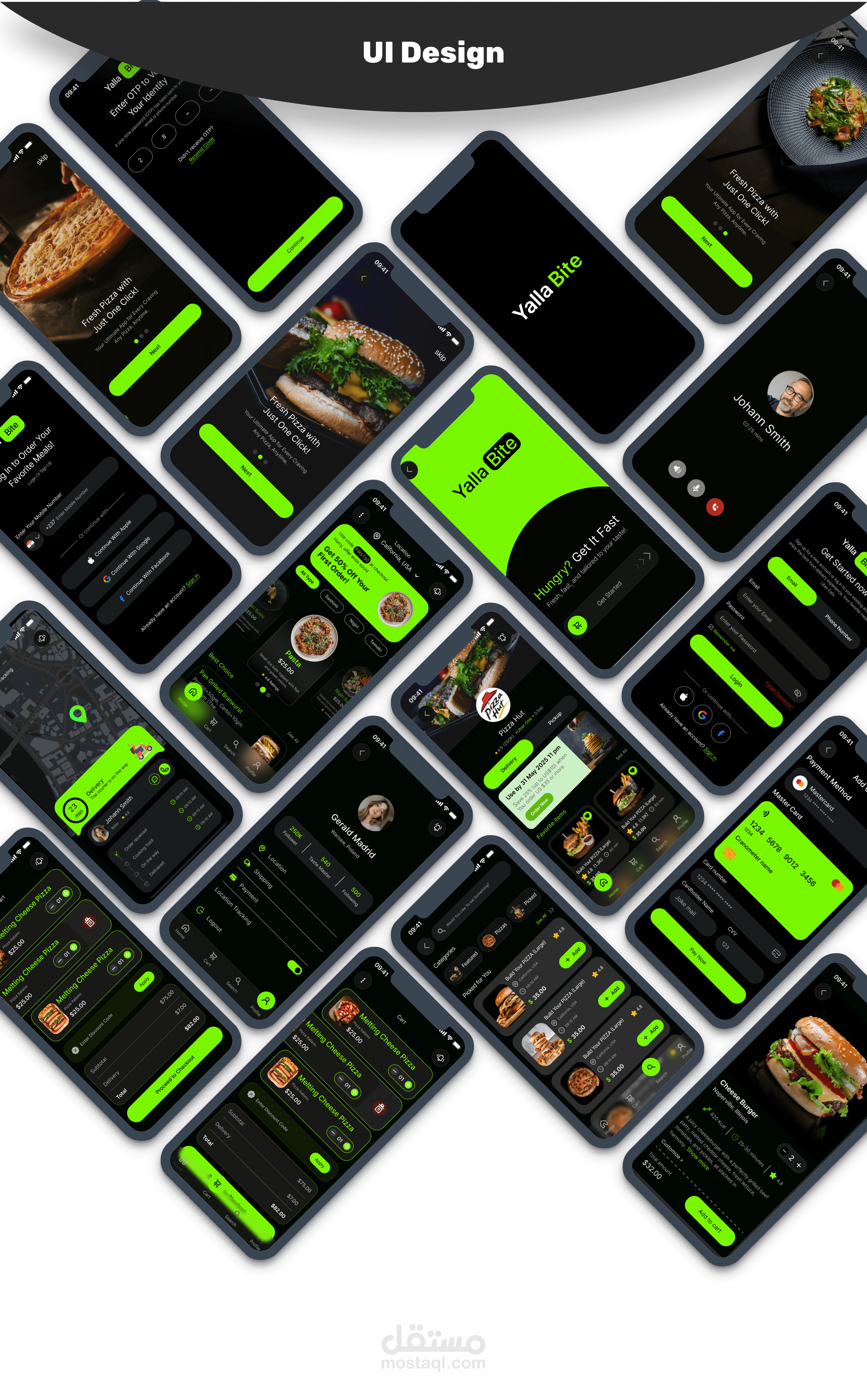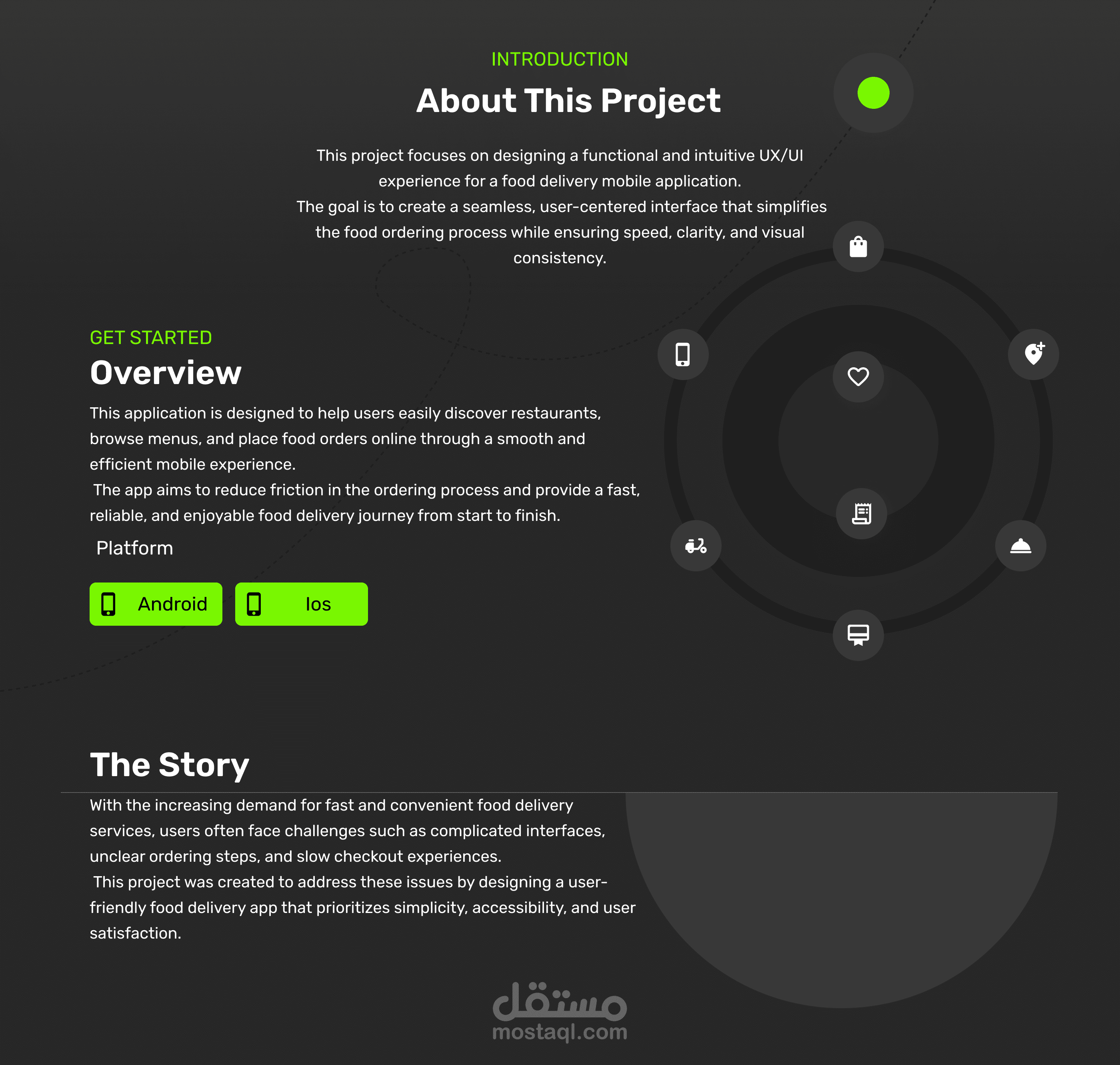 تصميم تطبيق توصيل طعام للهواتف الذكية يهدف إلى تقديم تجربة طلب سهلة وسريعة، بدءًا من استكشاف المطاعم وحتى إتمام الطلب وتتبع التوصيل.