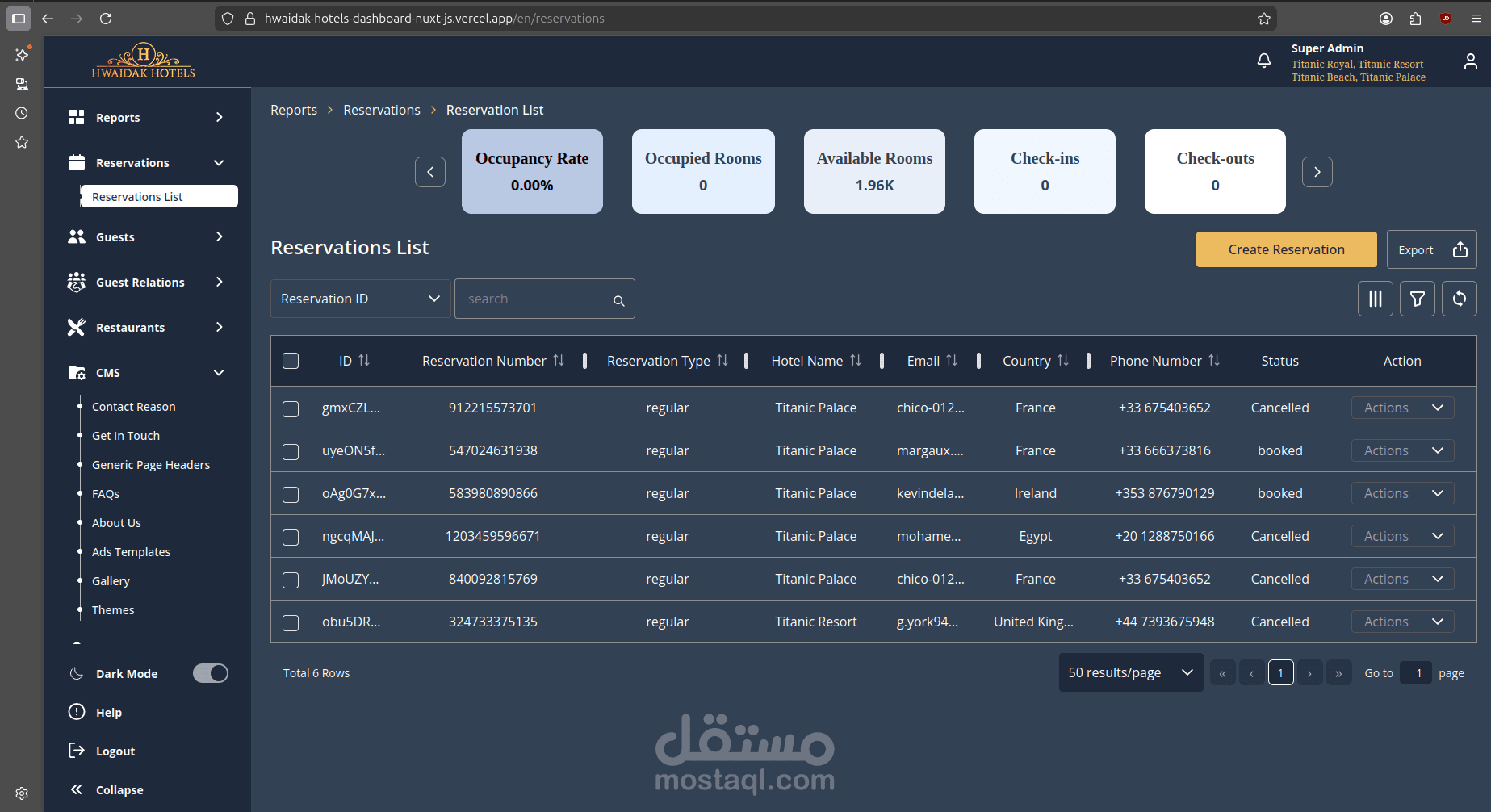 Hwaidak Hotels is a full-featured hotel management platform that includes a modern public-facing website and a powerful admin dashboard designed to manage hotel operations efficiently.