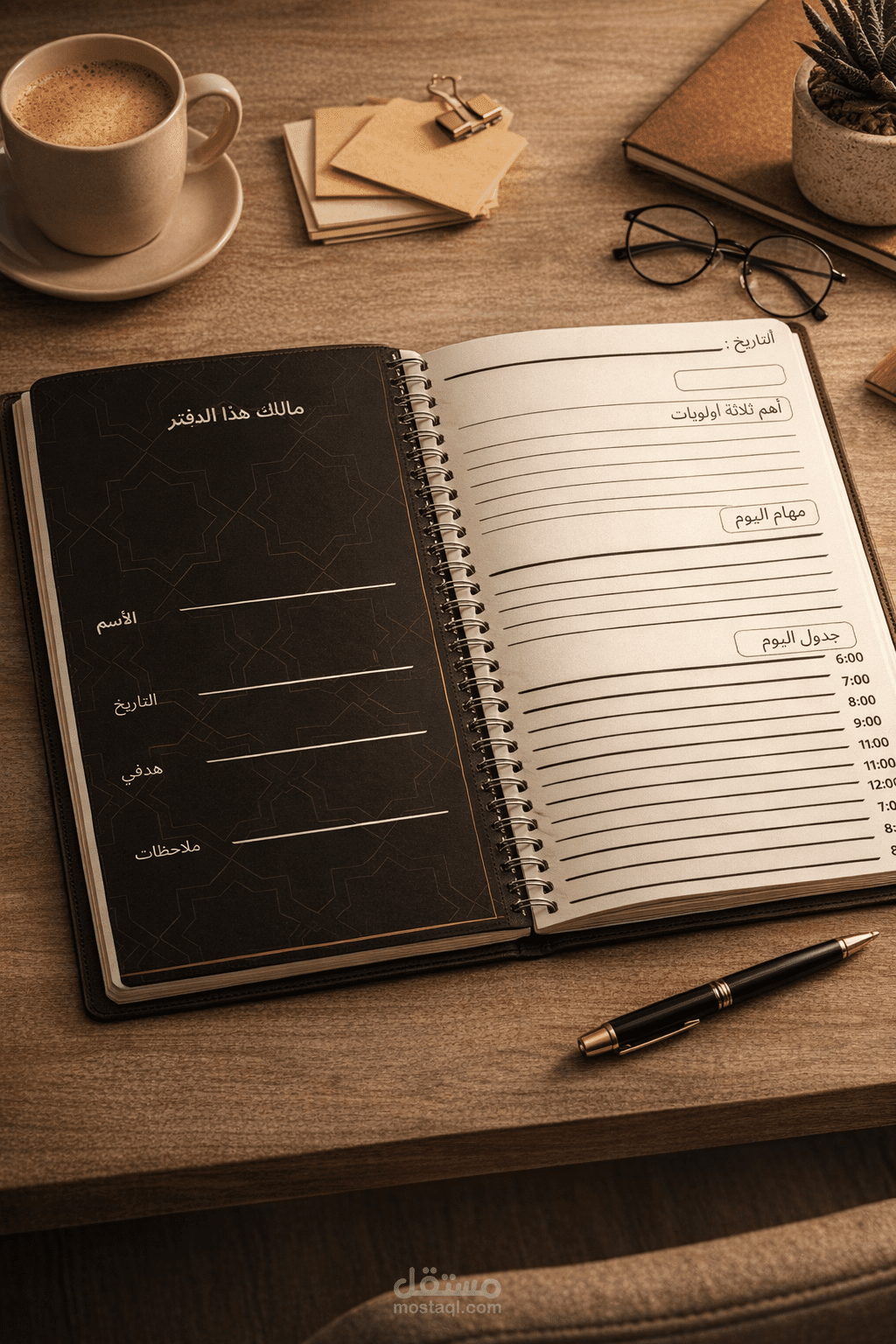 دفتر رقمي للاستخدام اليومي يساعد على تنظيم المهام، تدوين الملاحظات، وتسجيل الأفكار بشكل منظم وسهل.