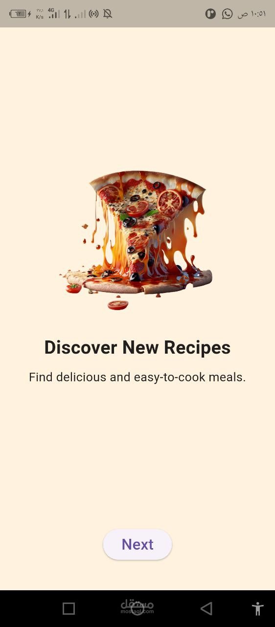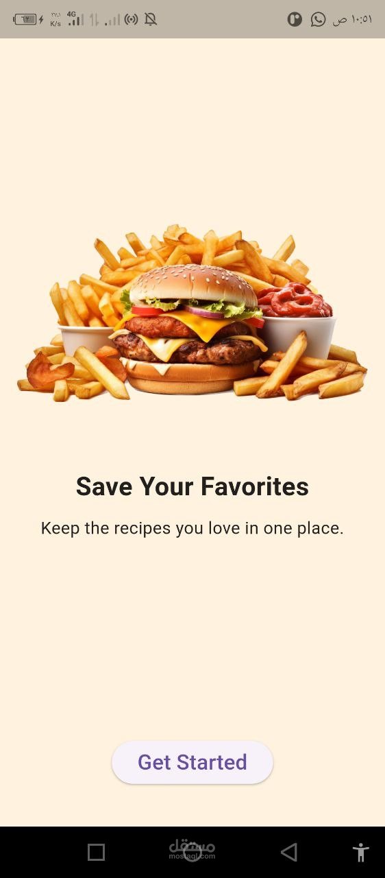 تطبيق بسيط للموبايل بيعرض وصفات أكل وبيجيب البيانات من API باستخدام Flutter وDart.