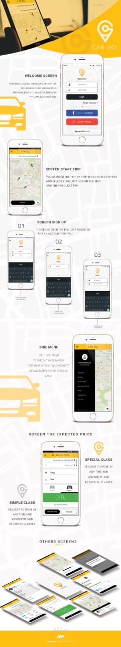 Car Go An Android & iOS application that lets users book and track drivers. The user can intuitively input a route, and Car Go finds the most appropriate driver for them. There are multiple car classes, including a service for moving home contents or other large cargo