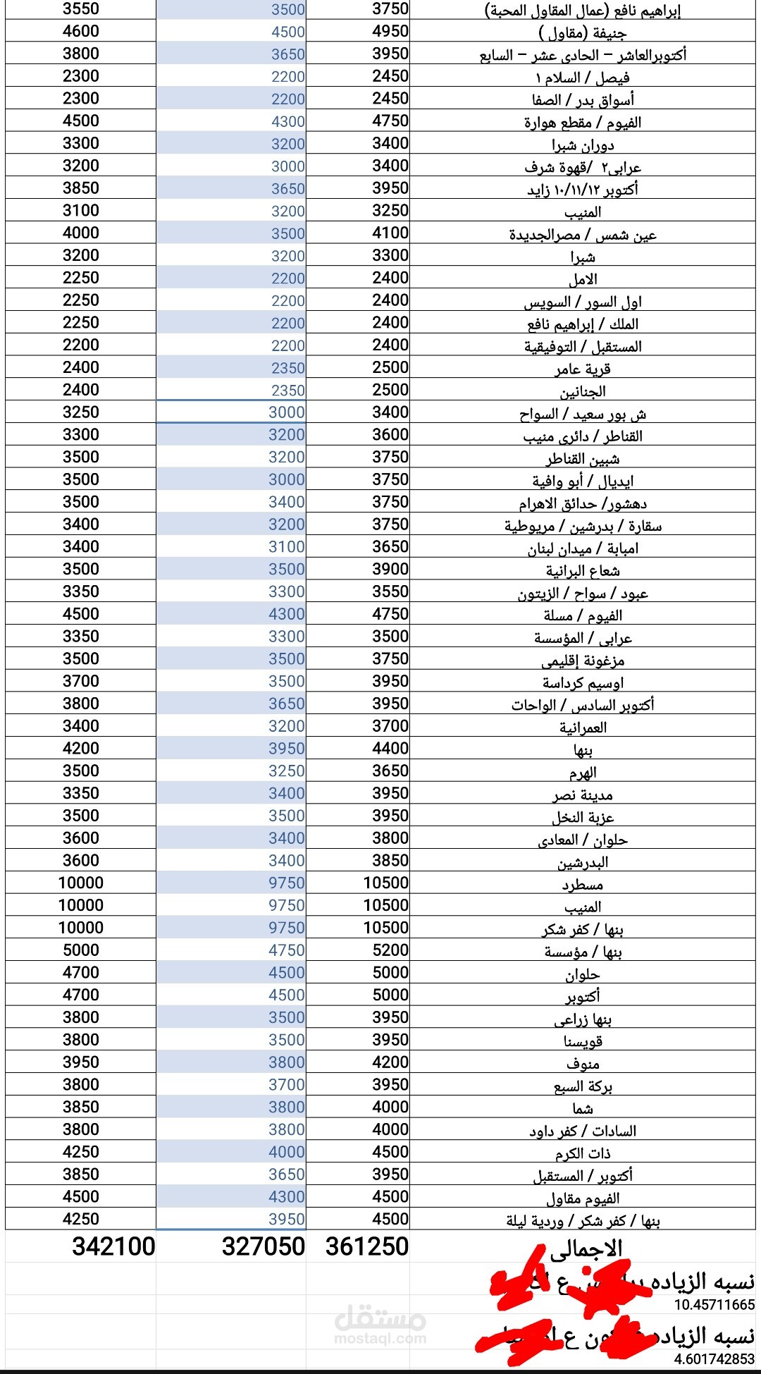 شغل اكسيل ومرفق صوره من ملف لعمليه حسابيه وحساب النسب المئويه