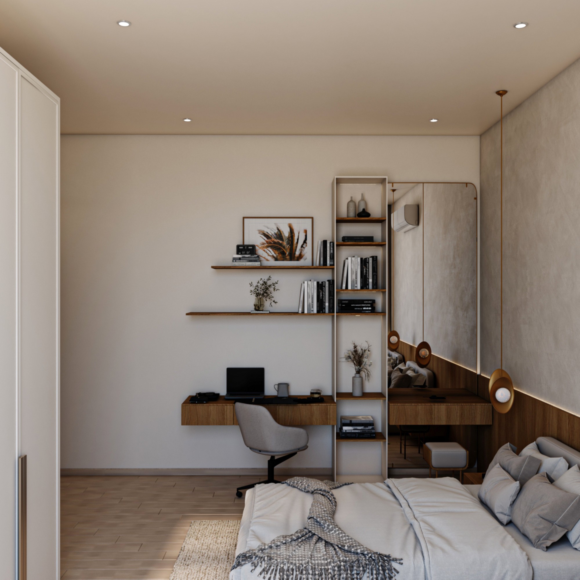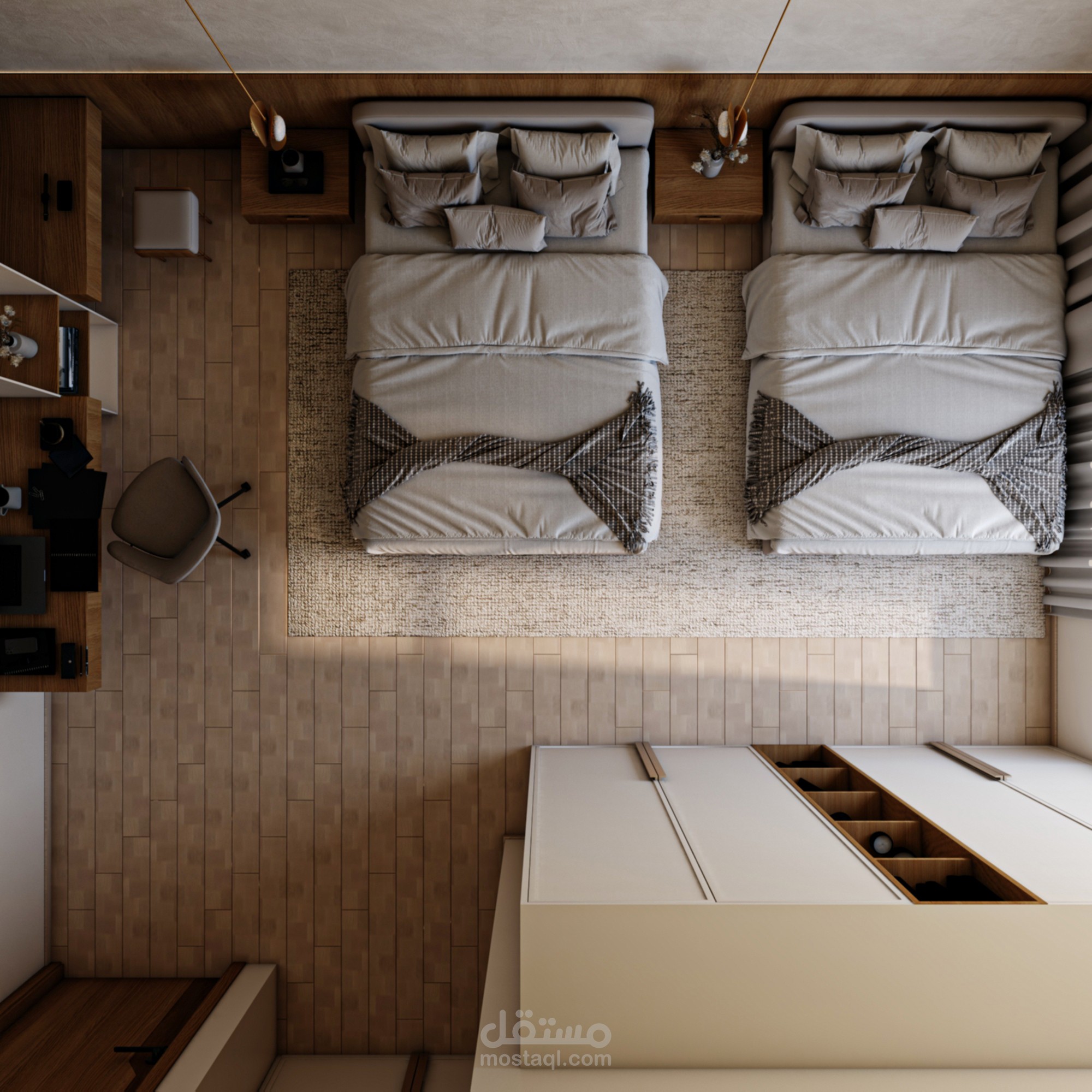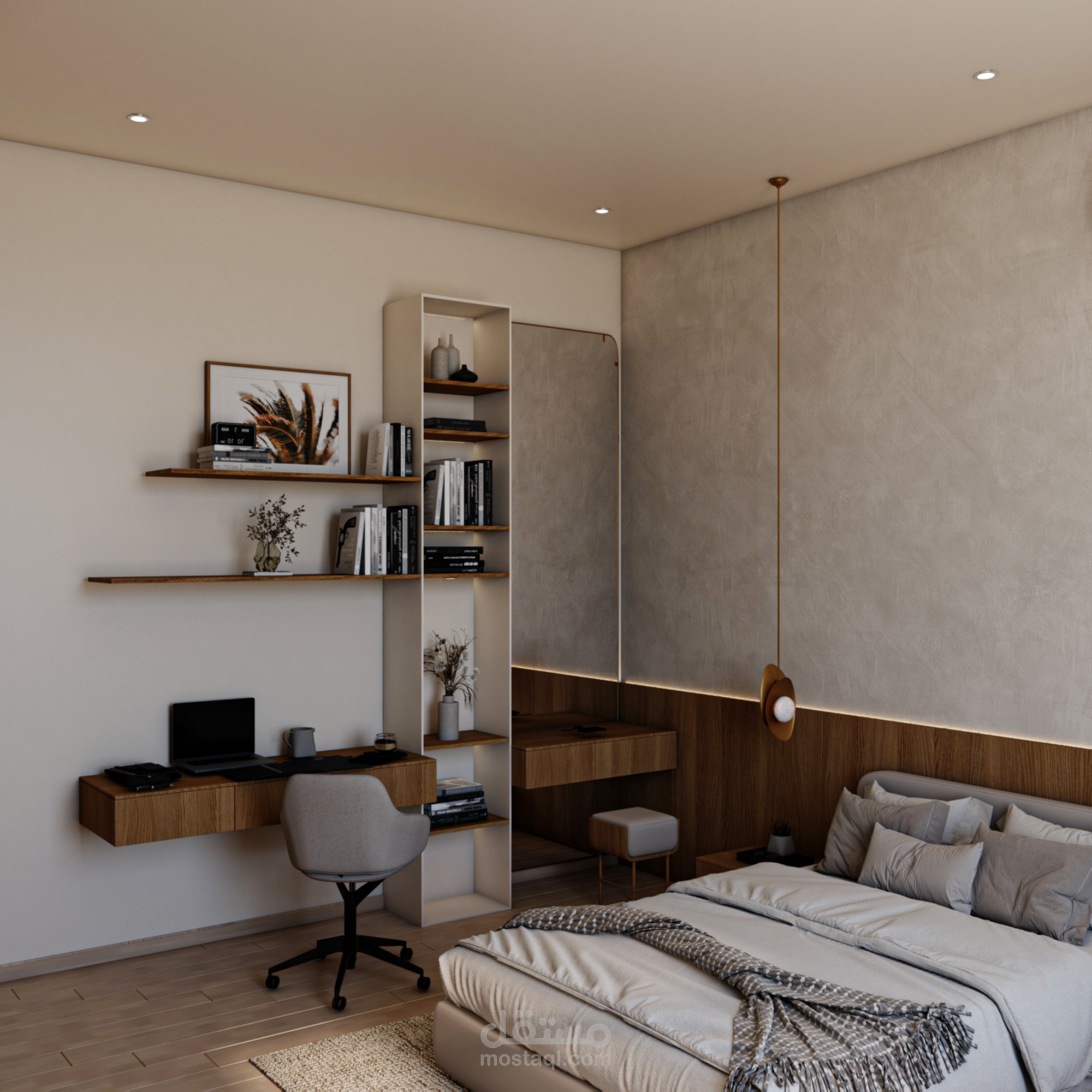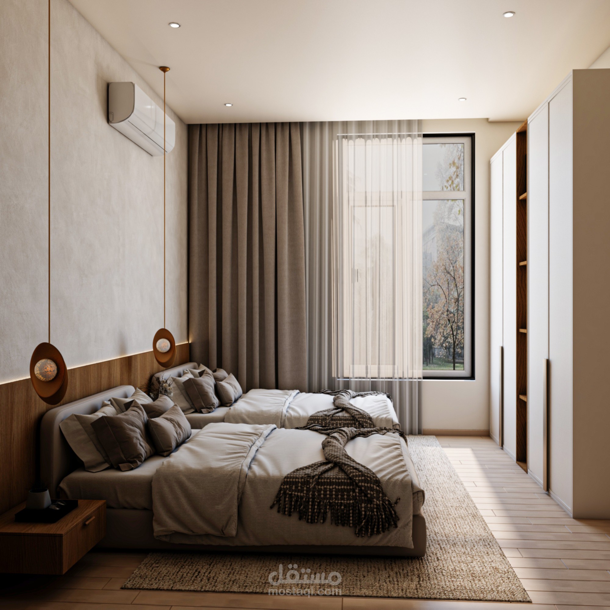 3D interior design and rendering for bedroom (scandinavian ) using 3ds Max and V-Ray, focusing on lighting, materials, and realistic visualization