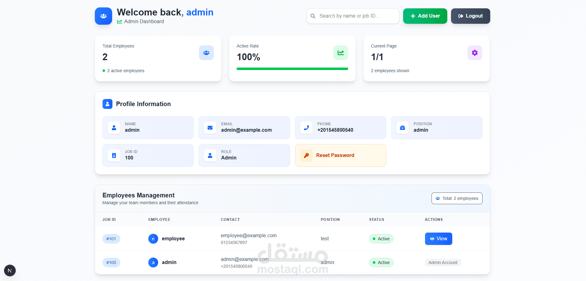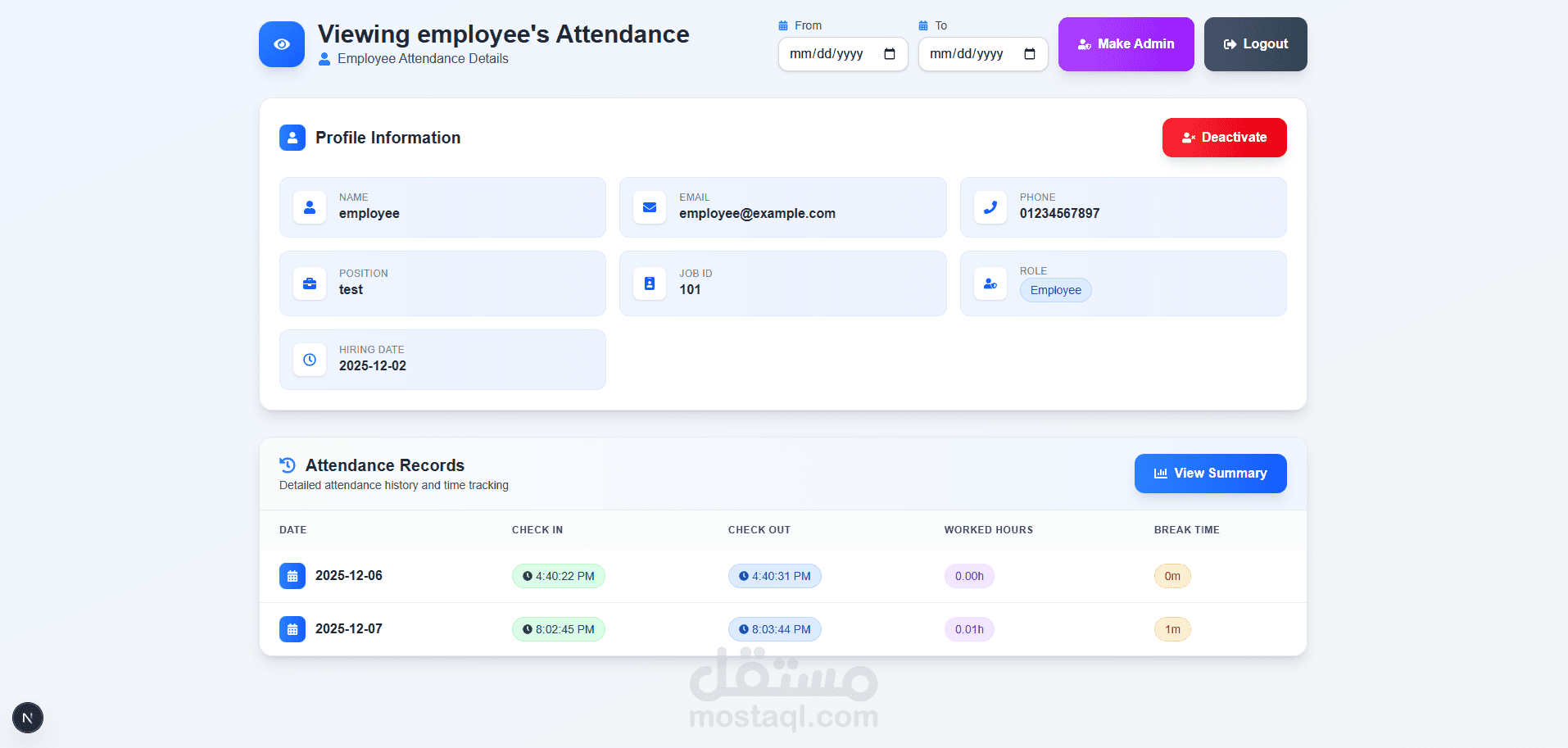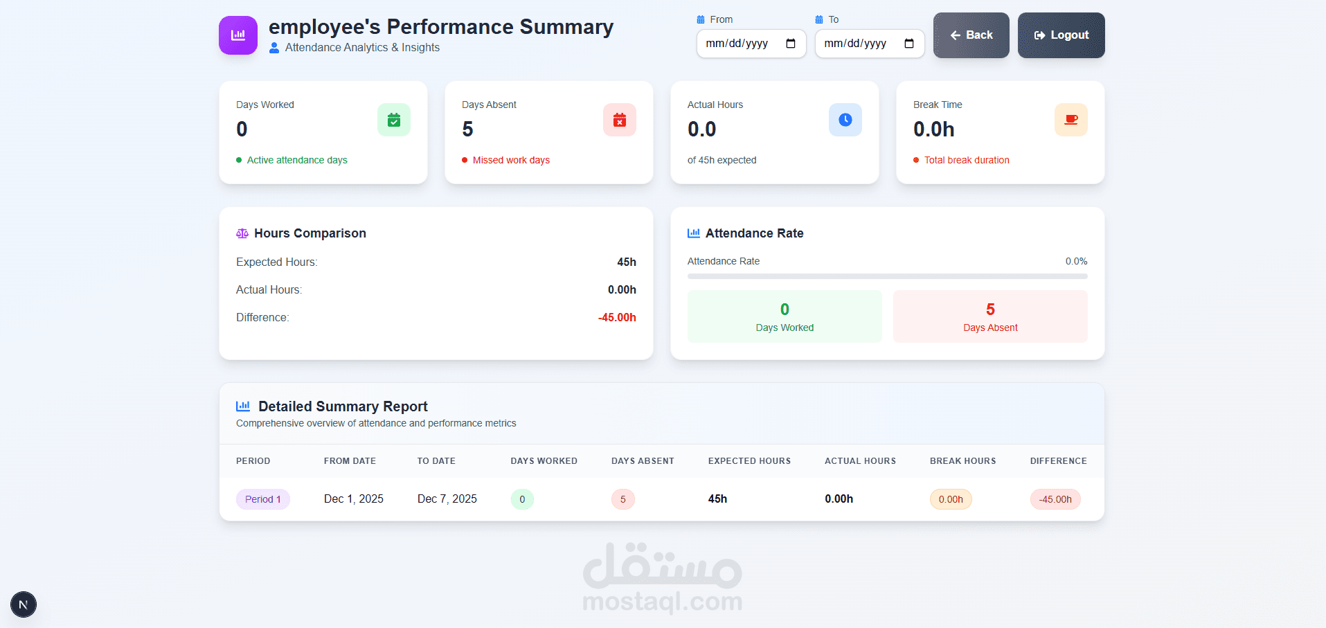 وبيتيح للإدارة متابعة حالة كل موظف في الوقت الفعلي من واجهة سهلة وواضحة.