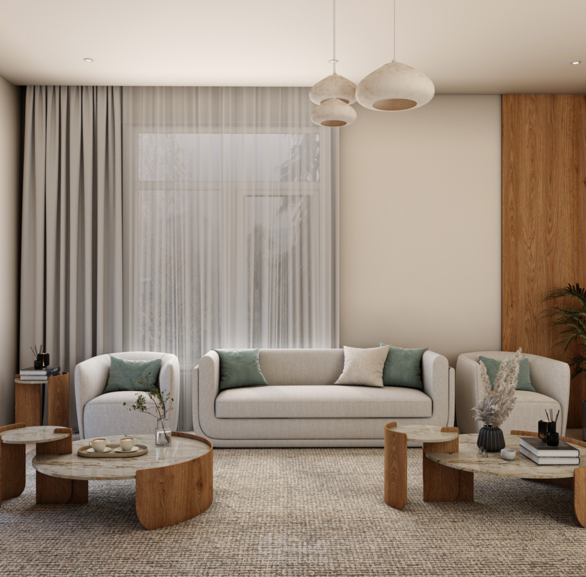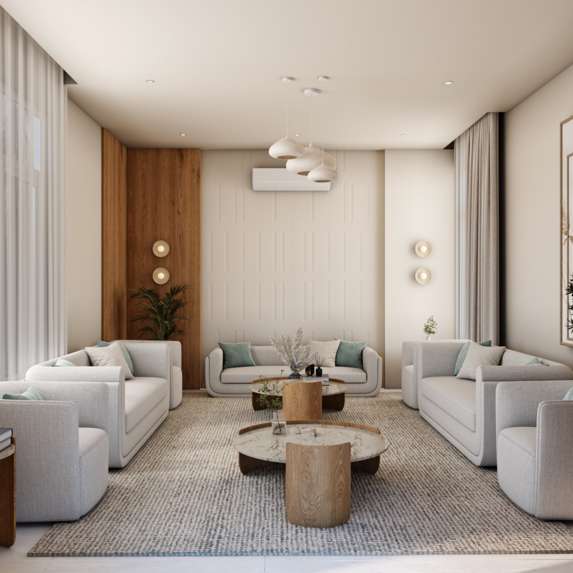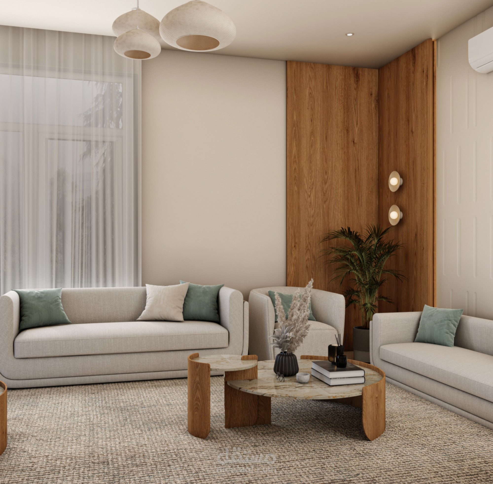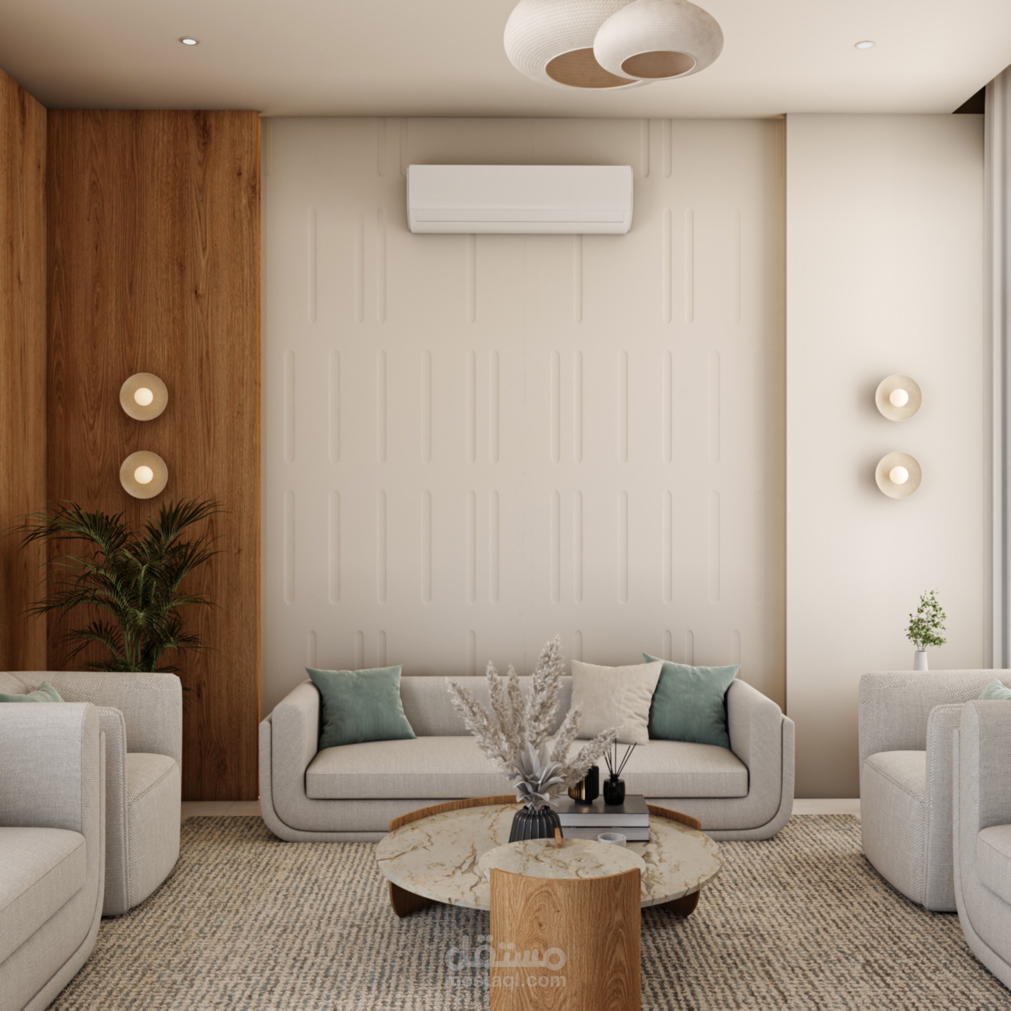 3D interior design and rendering for men majles using 3ds Max and V-Ray, focusing on lighting, materials, and realistic visualization.