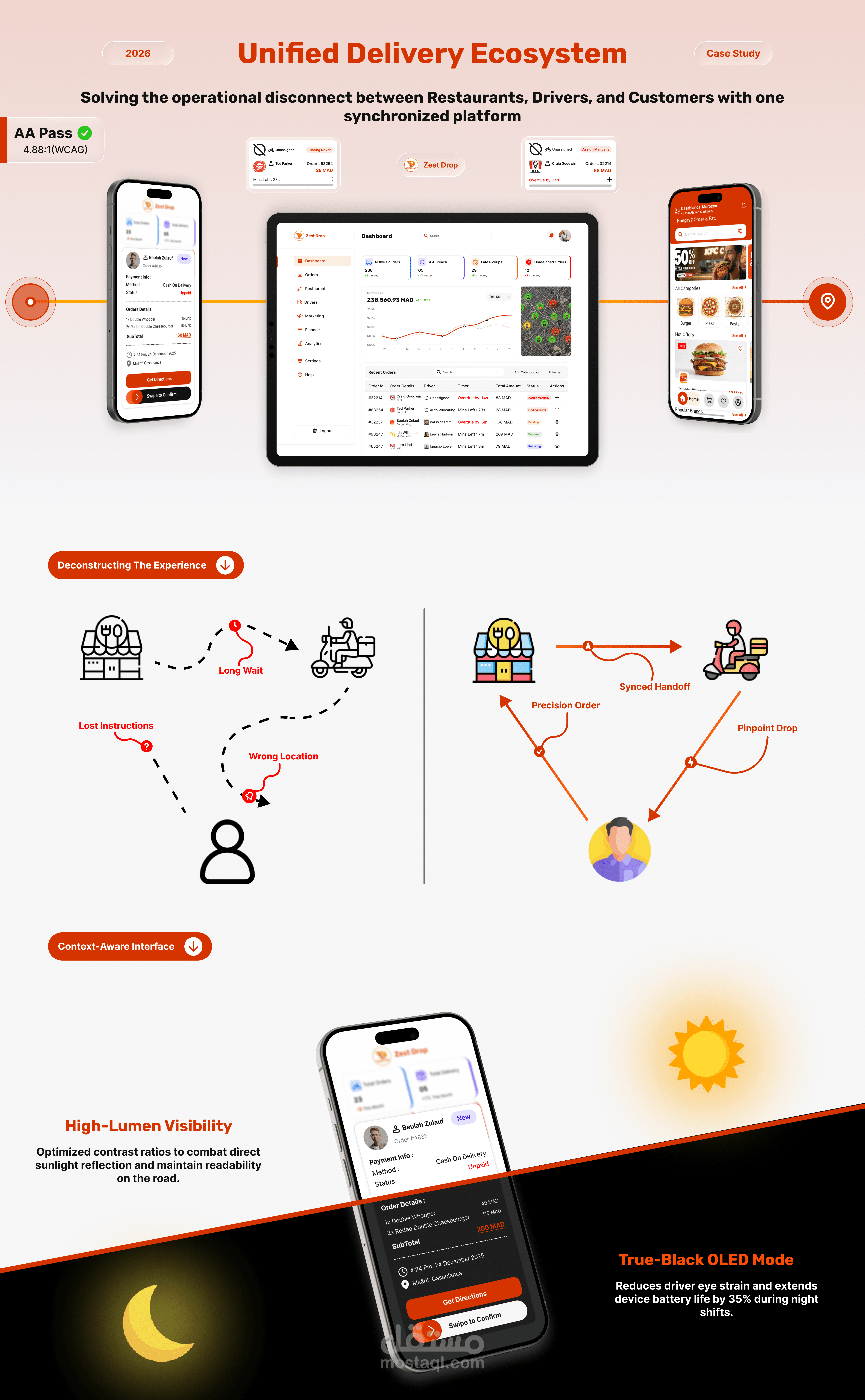 system designed to synchronize the chaos of modern food logistics. The challenge was to connect four distinct user groups—Customers, Drivers, Restaurants, and Admins—into one seamless, real-time ecosystem.