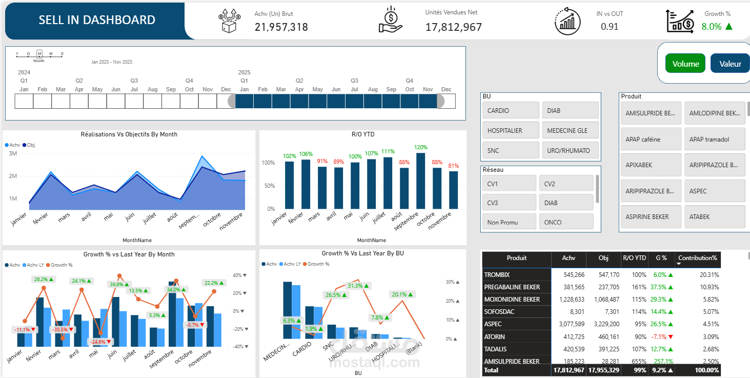 من خلال الجمع بين تحليل الاتجاهات، ومراقبة معدلات الإنجاز، ورؤية فجوة المبيعات الداخلية والخارجية، تدعم اللوحة فرق المبيعات وسلسلة التوريد في تحسين تنفيذ المبيعات، ومواءمة الطلب، وأداء محفظة المنتجات.