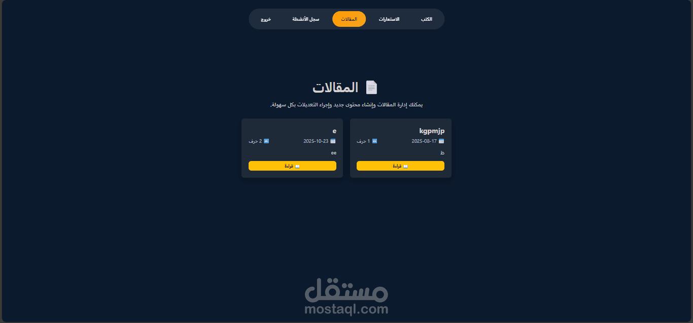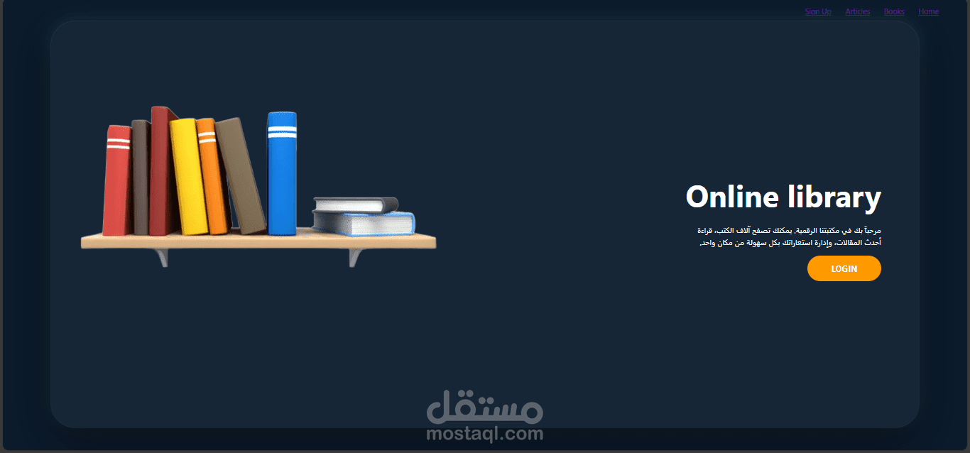 مشروع مكتبة إلكترونية متكاملة يتيح للمستخدمين والمشرفين إدارة الكتب والمقالات بسهولة وسلاسة. يسمح التطبيق بإضافة، تعديل، وحذف الكتب والمقالات، إضافة إلى استعارتها وإرجاعها، مع إمكانية تقييم الكتب وعرض سجل نشاطات المستخدمين بشكل كامل.