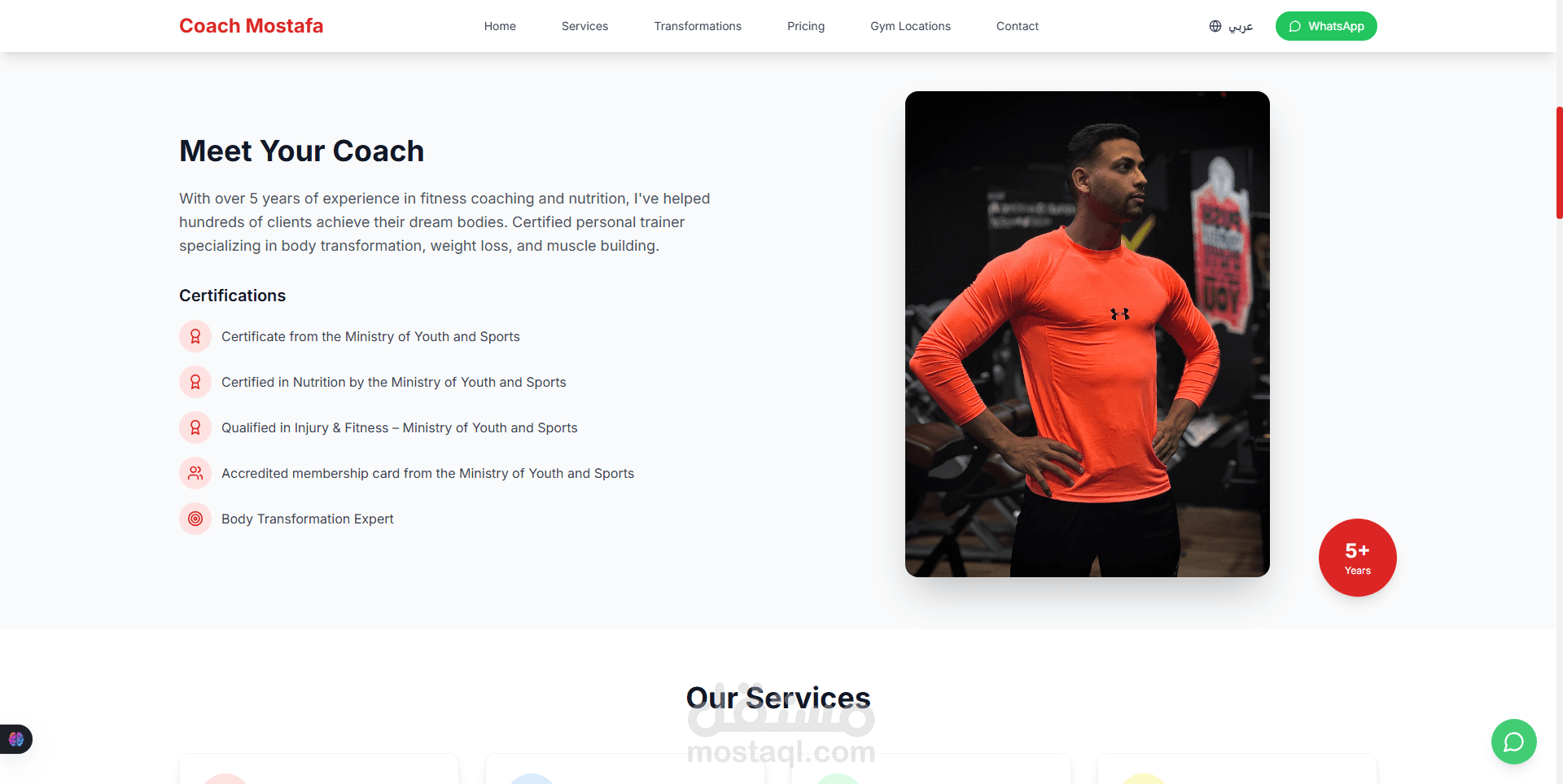 The website is designed to highlight the coach’s identity, training philosophy, and real results through a clean, powerful UI with smooth animations and modern visuals that reflect strength, discipline, and trust.