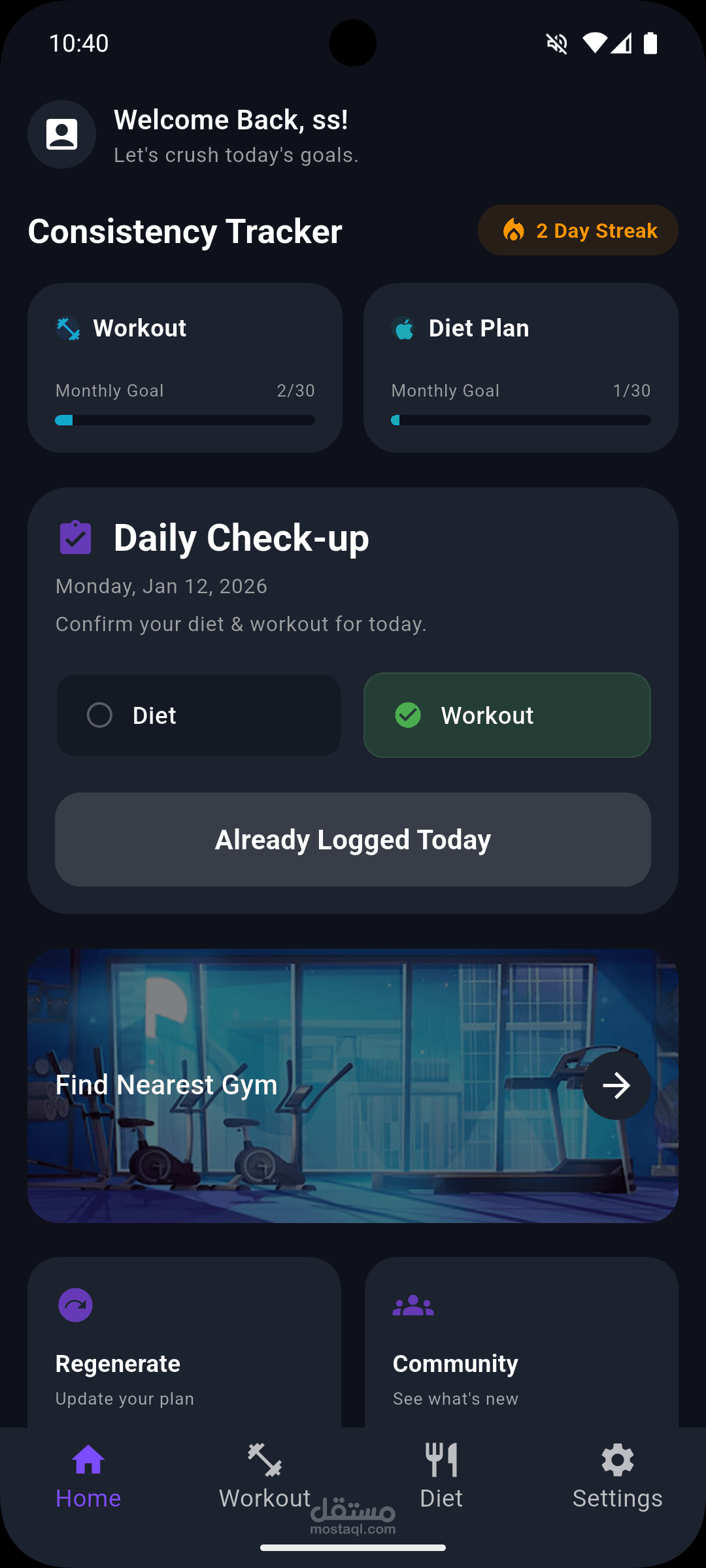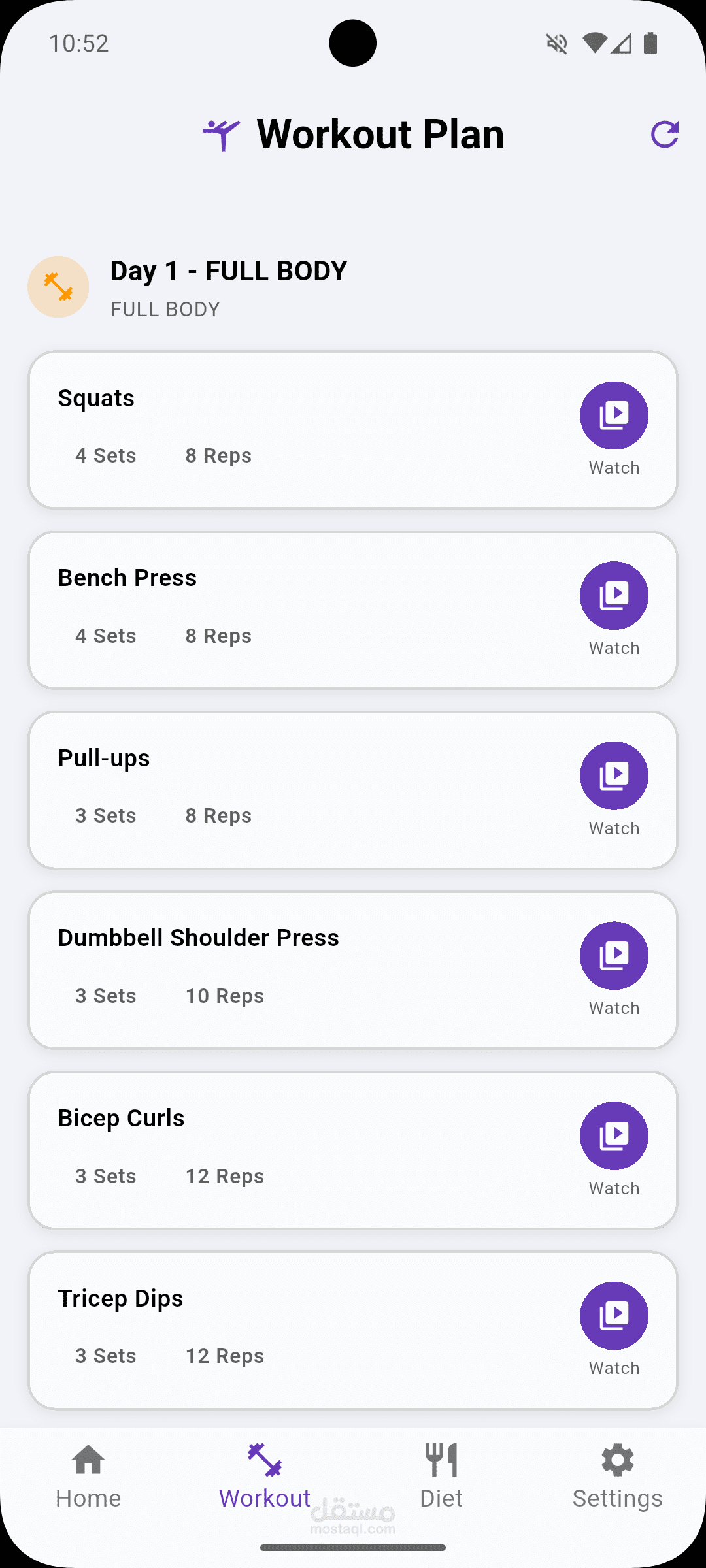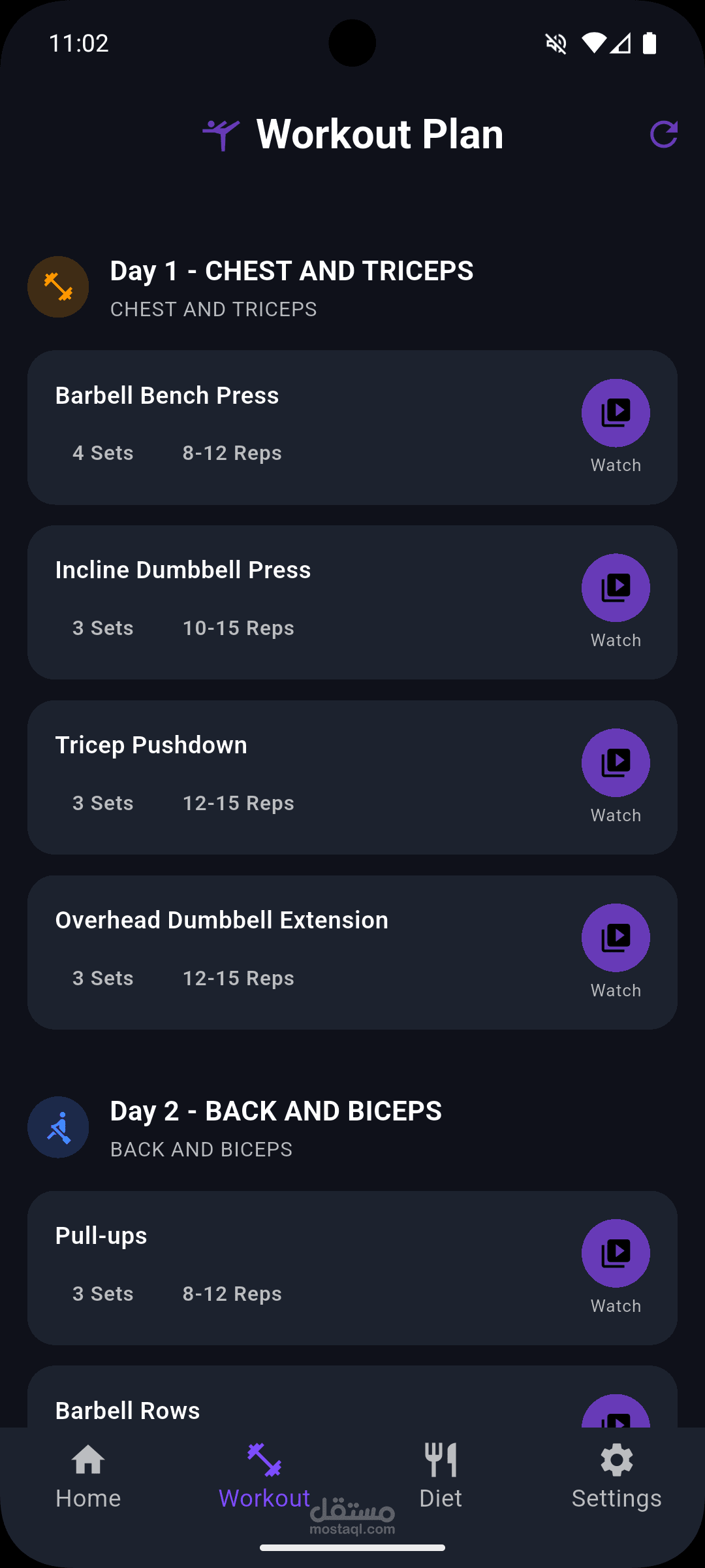 عدادات تكرار التمارين (Rep Counter) لكل تمرين.