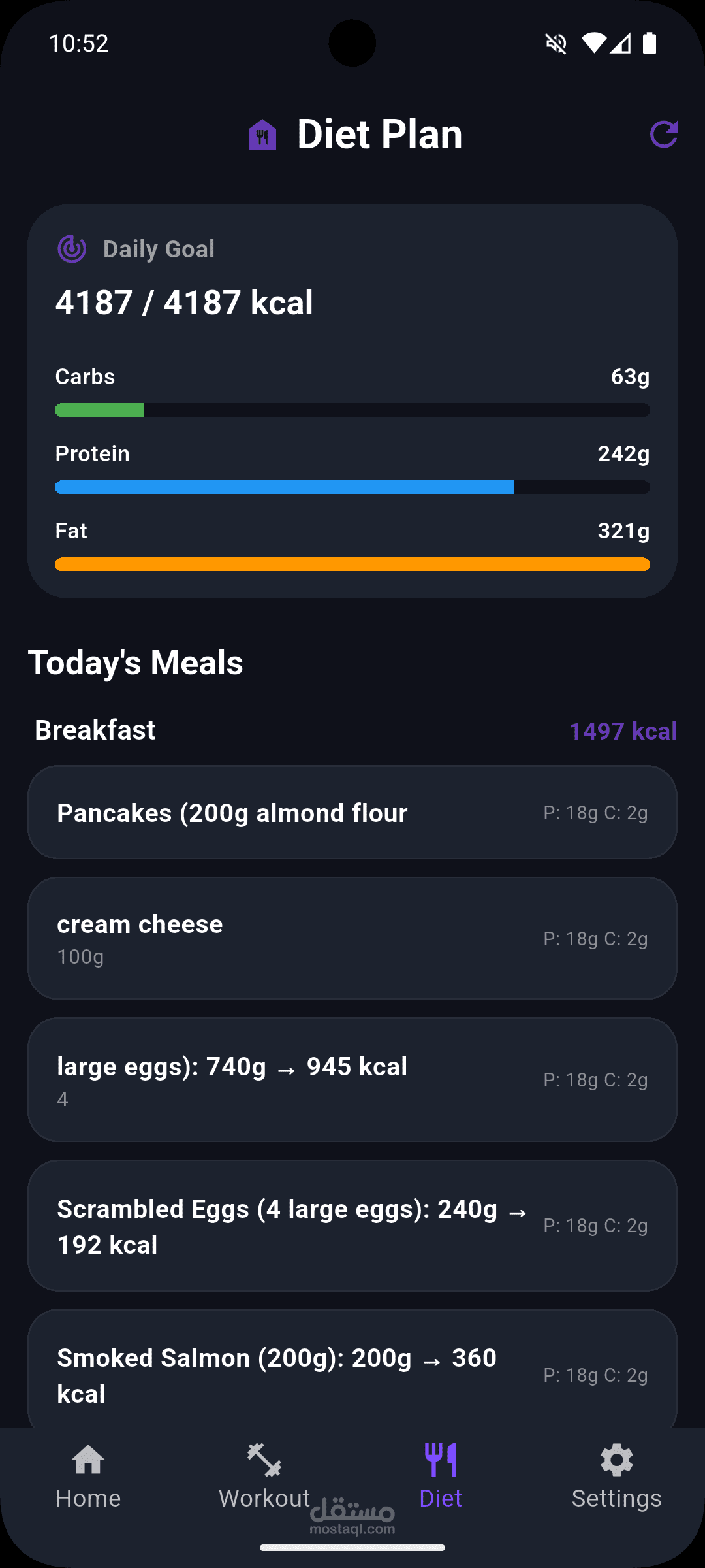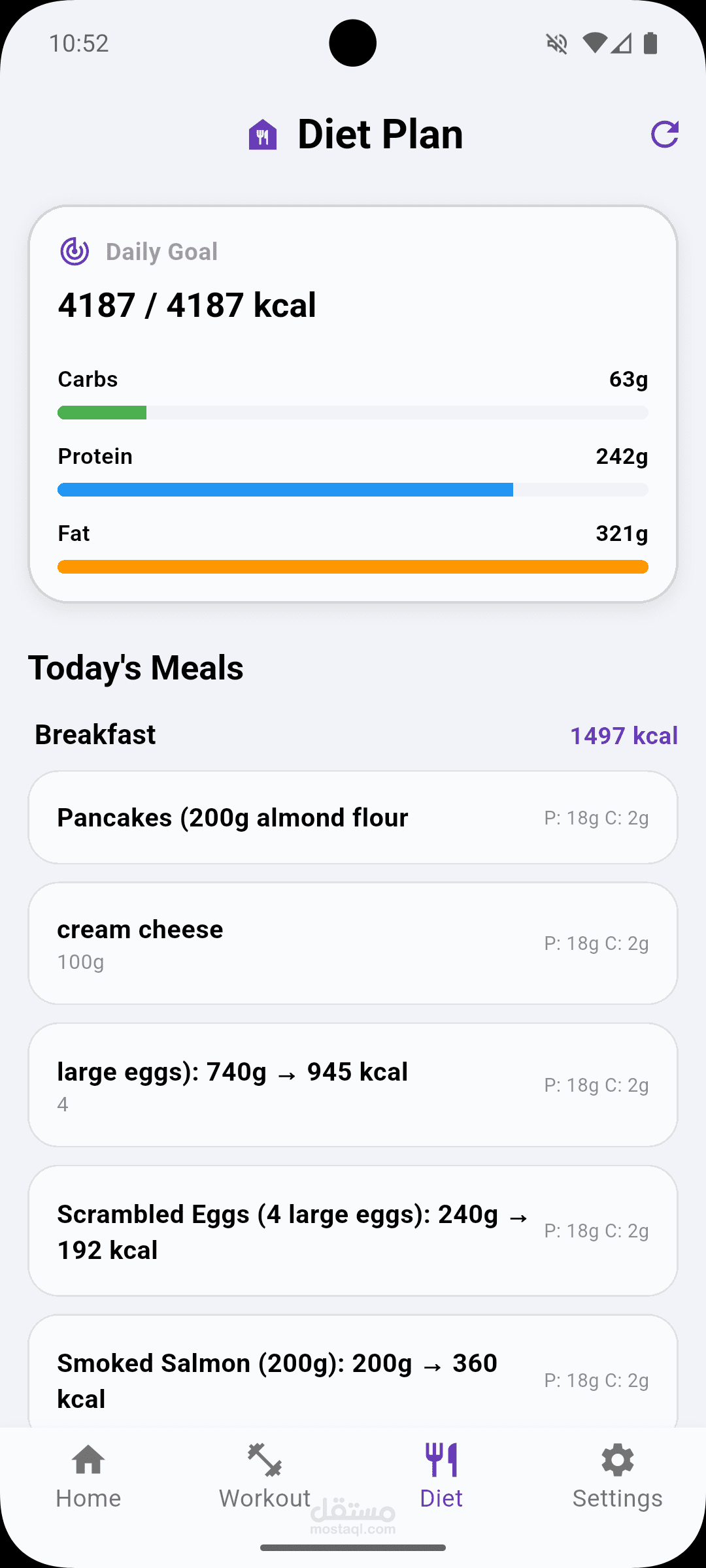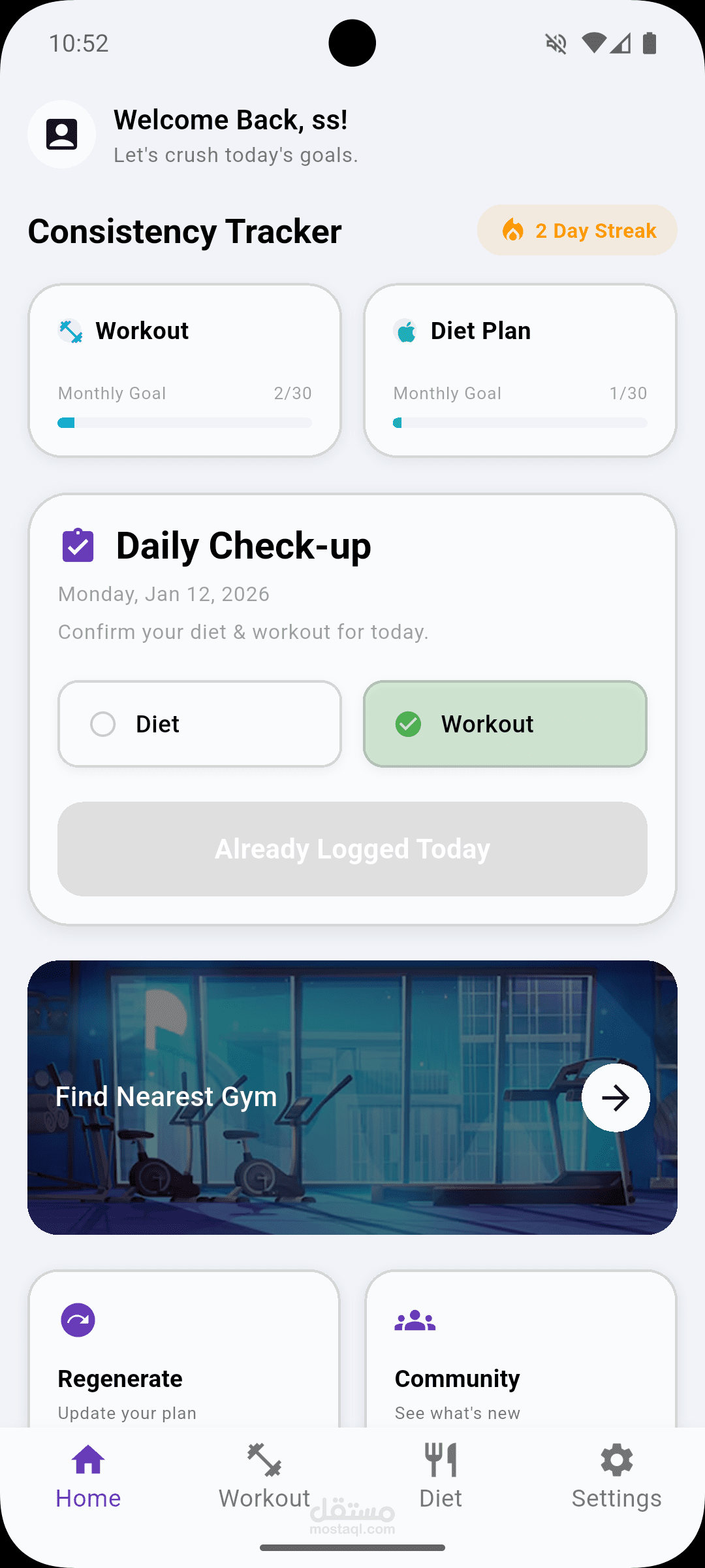 عدادات تكرار التمارين (Rep Counter) لكل تمرين.