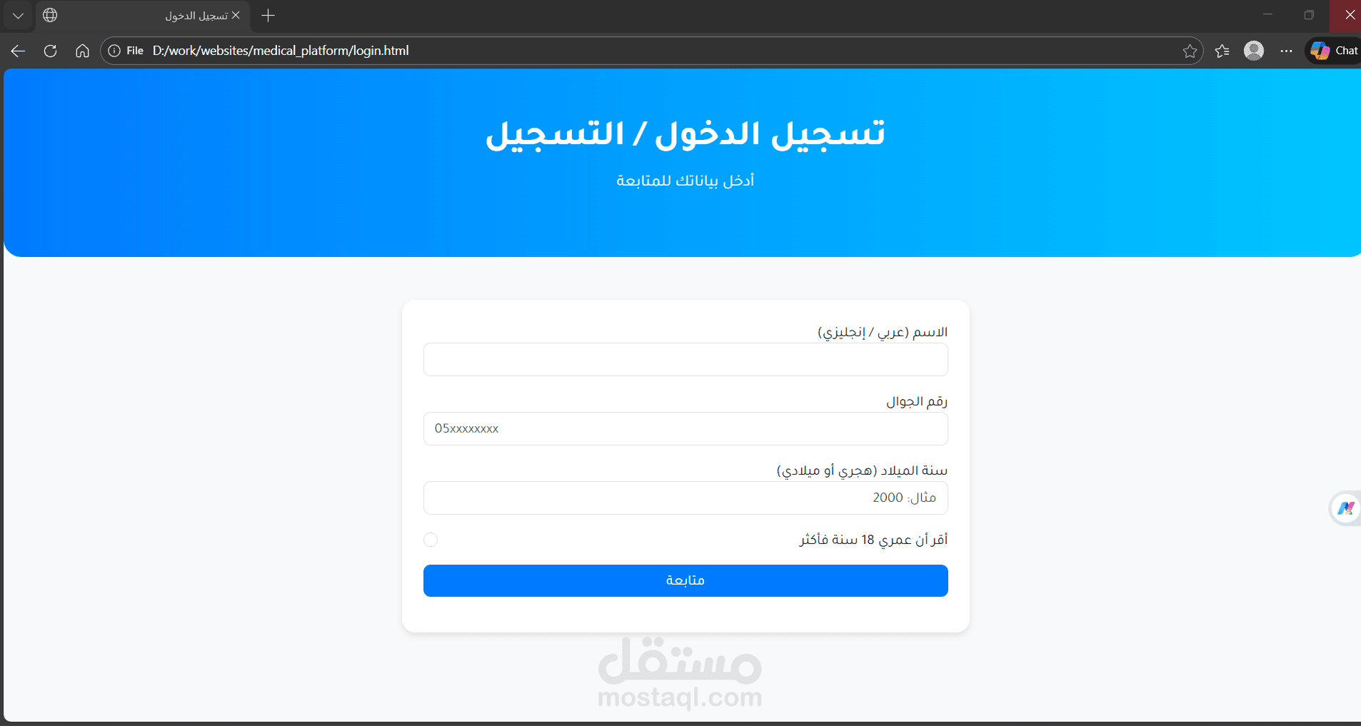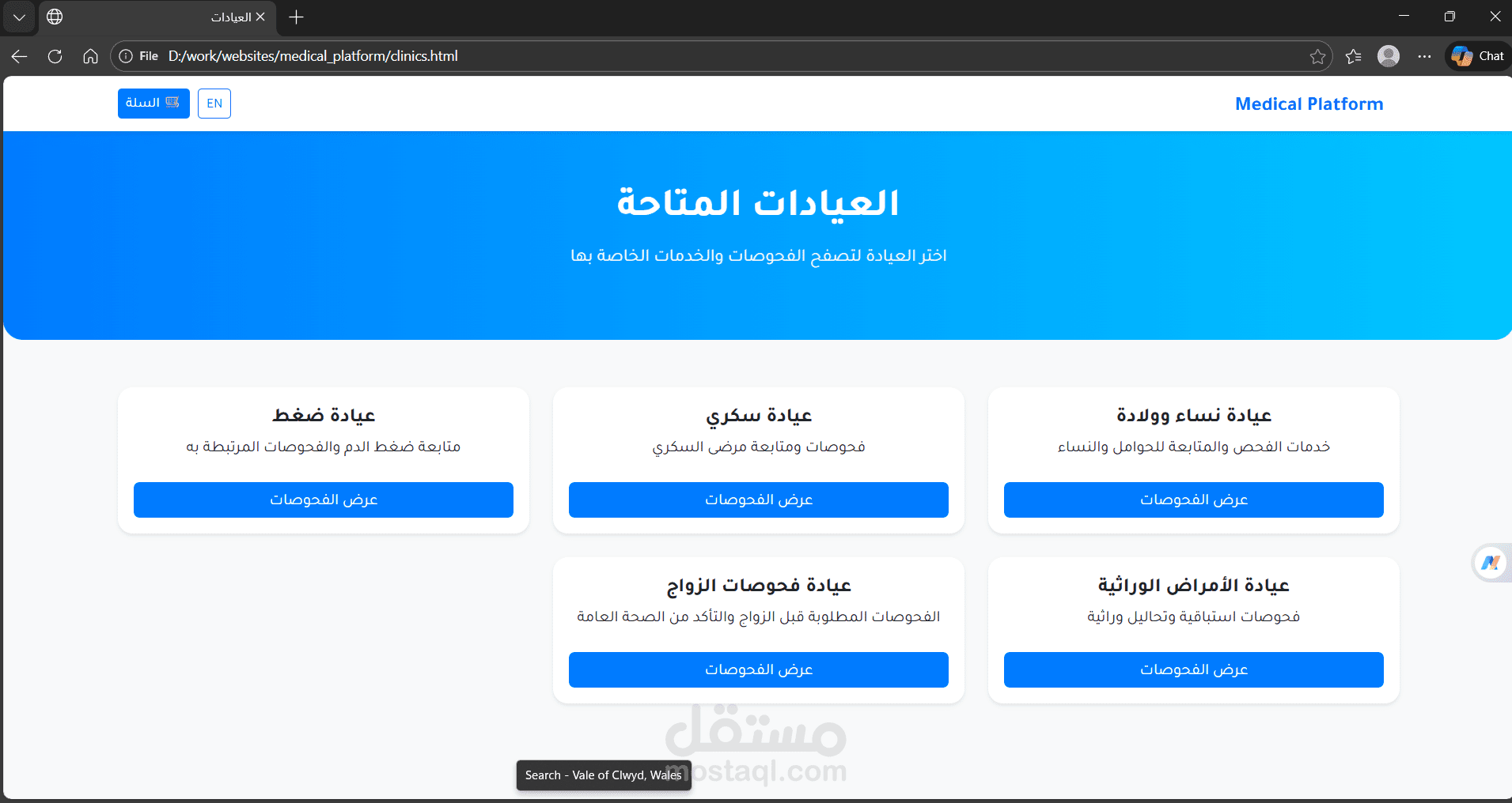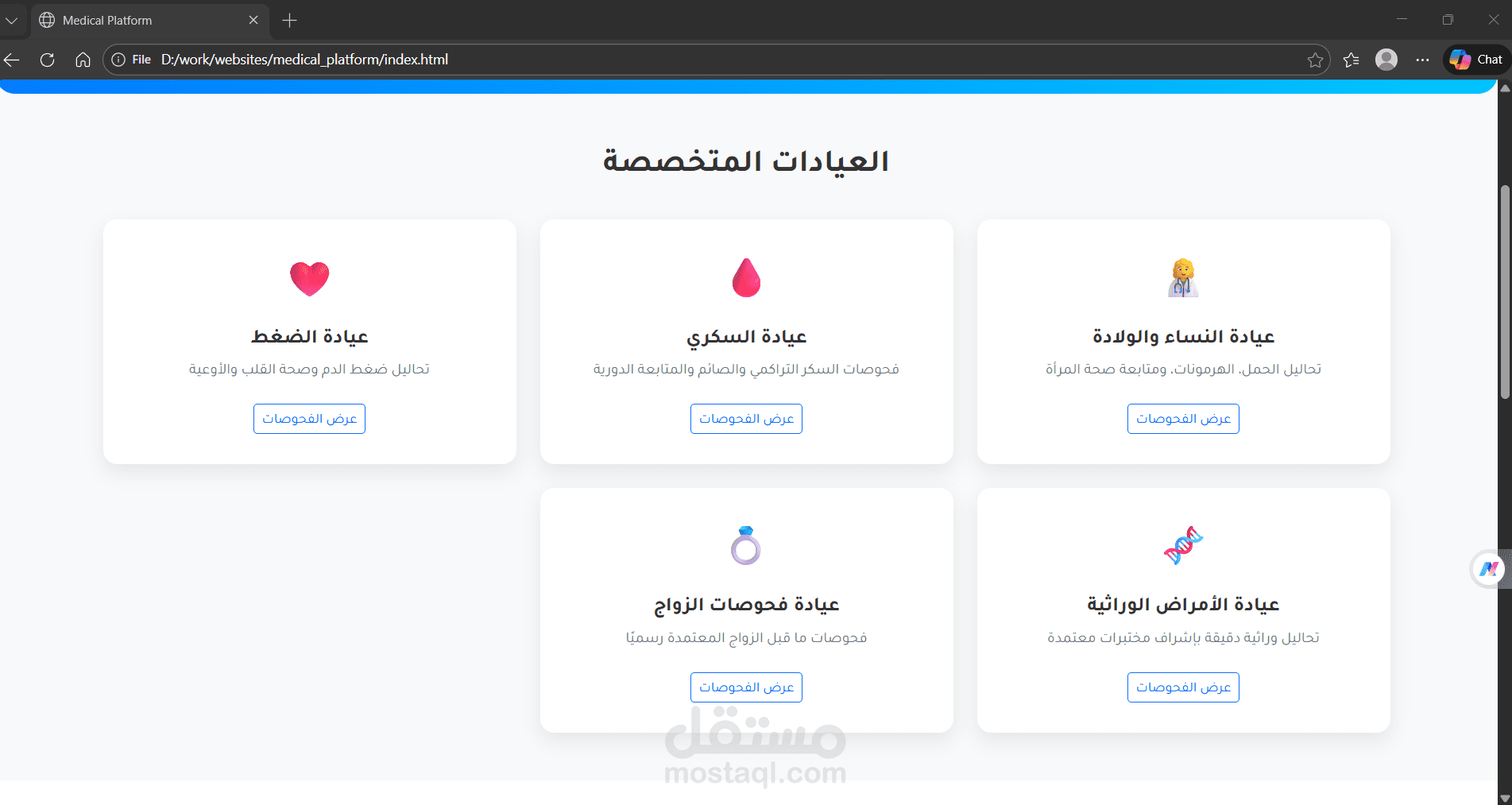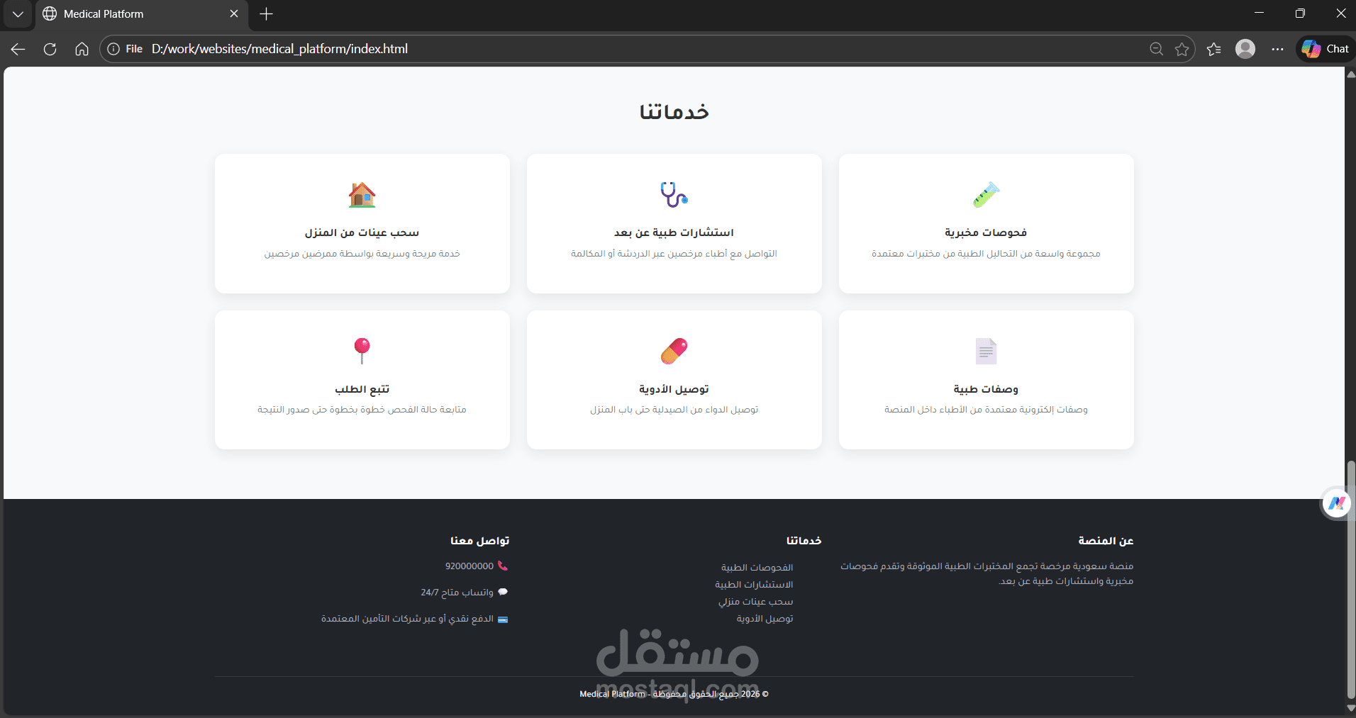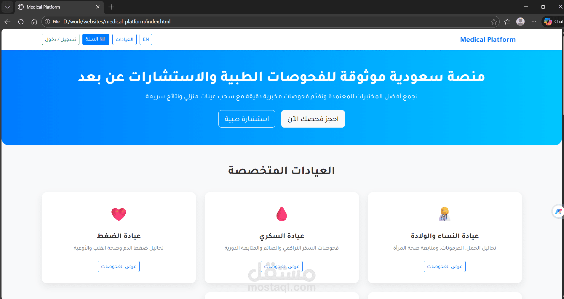 مشروع موقع طبي يهدف إلى تسهيل وصول المستخدمين إلى الخدمات الطبية من خلال منصة واحدة سهلة الاستخدام وبتصميم عصري.